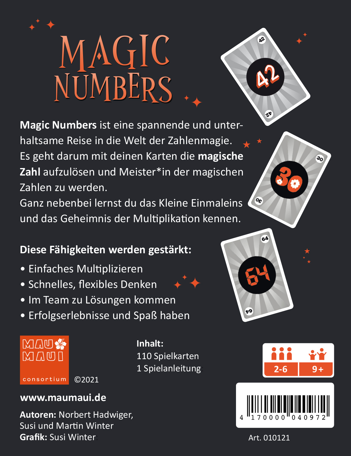 Inhalt der Spielebox: 110 Spielkarten in Turnierqualität, Spielanleitung auf Deutsch, 2 Multiplikationstabellen. Diese Fähigkeiten werden gestärkt: Einfaches Multiplizieren, schnelles flexibles Denken, Kommunikation, Erfolgserlebnisse und Spaß haben. Besondere Merkmale: Sprachneutrale Spielkarten, barrierefreie Gestaltung, in Deutschland entwickelt und hergestellt.. Marke: Mau Maui