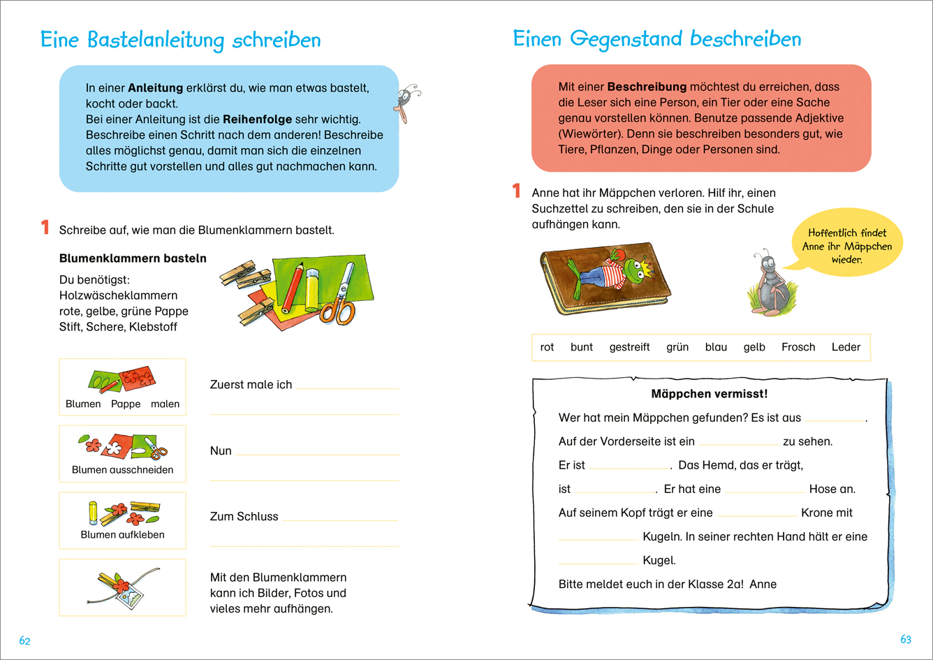 Fit für Deutsch 2. Klasse. Lernen und verstehen erklärt den Schulstoff nach den Lehrplänen. Sprache untersuchen, Rechtschreibung und eigene Texte schreiben sind die Schwerpunkte des Heftes. Mit hilfreichen Erklärkästen, witzigen Illustrationen und ergänzenden Übungen macht das Lernen noch mehr Spaß! Ob die Übungen richtig gemacht wurden, verrät das herausnehmbare Lösungsheft. In jedem Heft gibt es lustige Ameisen-Sticker und einen Ausmalbogen zum Bemalen und Bekleben. Für jede richtig abgeschlossene Doppelseite wird ein Sticker auf den Bogen geklebt. Ist das Bild vollständig, sind die Kinder fit für Deutsch 2. Klasse. Die Reihe Fit für die Schule ist von Lehrkräften empfohlen.