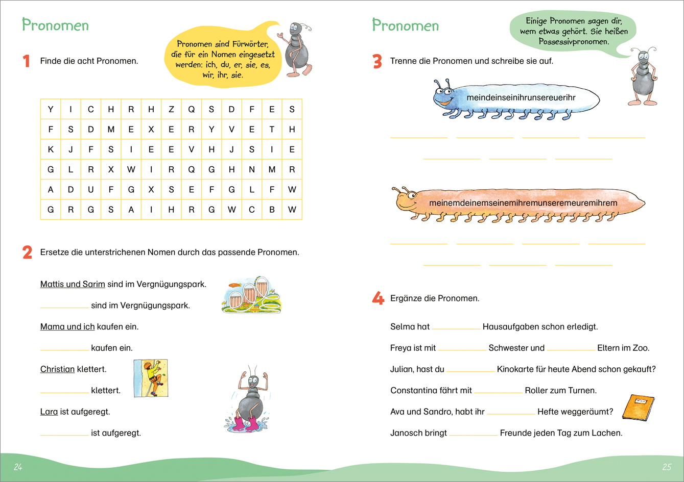 Mit Mein Übungsheft für die 3. Klasse Deutsch trainieren die Kinder Wortarten und Sätze, Sachtexte und das Schreiben eigener Geschichten. Das Heft ist die praktische Ergänzung zu Lernen und verstehen und orientiert sich ebenfalls an den Lehrplänen der Grundschulen. Für die einfache Selbstkontrolle enthält Mein Übungsheft ein herausnehmbares Lösungsheft. Für die zusätzliche Motivation zum Lernen kann für jede richtig ausgefüllte Doppelseite ein Sticker der lustigen Ameisen auf den Ausmalbogen geklebt werden. Diese sind in jedem Mein Übungsheft zu finden und sorgen für noch mehr Spaß beim Lernen. Sind alle Aufgaben richtig gelöst und alle Sticker eingeklebt, sind die Kinder fit für Deutsch 3. Klasse. Die Reihe Fit für die Schule ist von Lehrkräften empfohlen.