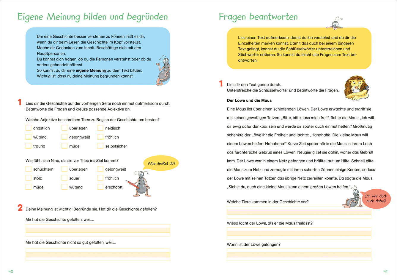 Wortarten und Sätze, Sachtexte und eigene Geschichten bilden die Schwerpunkte von Fit für Deutsch 3. Klasse. Lernen und verstehen. Der Inhalt orientiert sich an den Lehrplänen. Neben Erklärkästen, die den Schulstoff einfach und prägnant wiedergeben, helfen Übungen, das Gelernte anzuwenden und zu verstehen. Für die Selbstkontrolle der Übungen hilft ein herausnehmbares Lösungsheft. Wurden alle Aufgaben auf einer Doppelseite richtig gelöst, dürfen die Kinder einen der bunten Ameisen-Sticker auf den Ausmalbogen aufkleben. Sind alle 30 Sticker drauf? Dann sind die Kinder fit für Deutsch 3. Klasse. Die Reihe Fit für die Schule ist von Lehrkräften empfohlen.