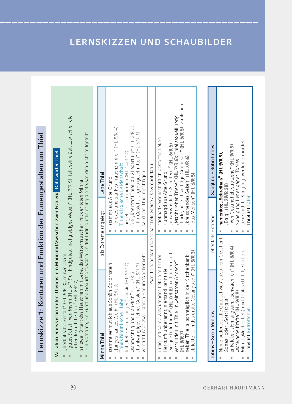 1 DAS WICHTIGSTE AUF EINEN BLICK SCHNELLÜBERSICHT2 GERHART HAUPTMANN: LEBEN UND WERK2.1 Biografie2.2 Zeitgeschichtlicher HintergrundReichsgründung und SozialistengesetzDer deutsche Naturalismus und die moderne TechnikKunst und Wissenschaft: Die Suche nach der Kunst-Formel2.3 Angaben und Erläuterungen zu wesentlichen Werken3 TEXTANALYSE UND -INTERPRETATION3.1 Entstehung und Quellen3.2 Inhaltsangabe3.3 Aufbau"Novellistische Studie" als GenrebezeichnungOrts- und ZeitangabenErzählsituation, Symbole und MotiveDer Konflikt3.4 Personenkonstellation und CharakteristikenBahnwärter ThielThiels erste Frau MinnaThiels zweite Frau LeneTobias3.5 Sachliche und sprachliche Erläuterungen3.6 Stil und SpracheSprachliche Unterschiede in den drei TeilenDas Begriffsfeld "Ordnung" und seine ZerstörungParallelen zu Georg Büchners Woyzeck3.7 InterpretationsansätzeDie "novellistische Studie" als Beispiel des NaturalismusDas Motiv des vernachlässigten KindesModerne Technik, Eisenbahn und MenschDarstellung einer Dreiecksbeziehung: Das "Gleichen"-ModellZahlensymbolik: die Zahl DreiDie Rolle der Religion: die Herrnhuter Brüdergemeine3.8 Schlüsselstellenanalysen4 REZEPTIONSGESCHICHTEZeitgenössische RezeptionPaul Ernsts Erzählung Die Frau des Bahnwärters (1928)Hans Francks Novelle Quitt (1928)Bahnwärter Thiel als Hörspiel (1946), Fernseherzählung (1982) und Oper (2004)5 MATERIALIEN6 PRÜFUNGSAUFGABEN MIT MUSTERLÖSUNGENLERNSKIZZEN UND SCHAUBILDERLITERATUR