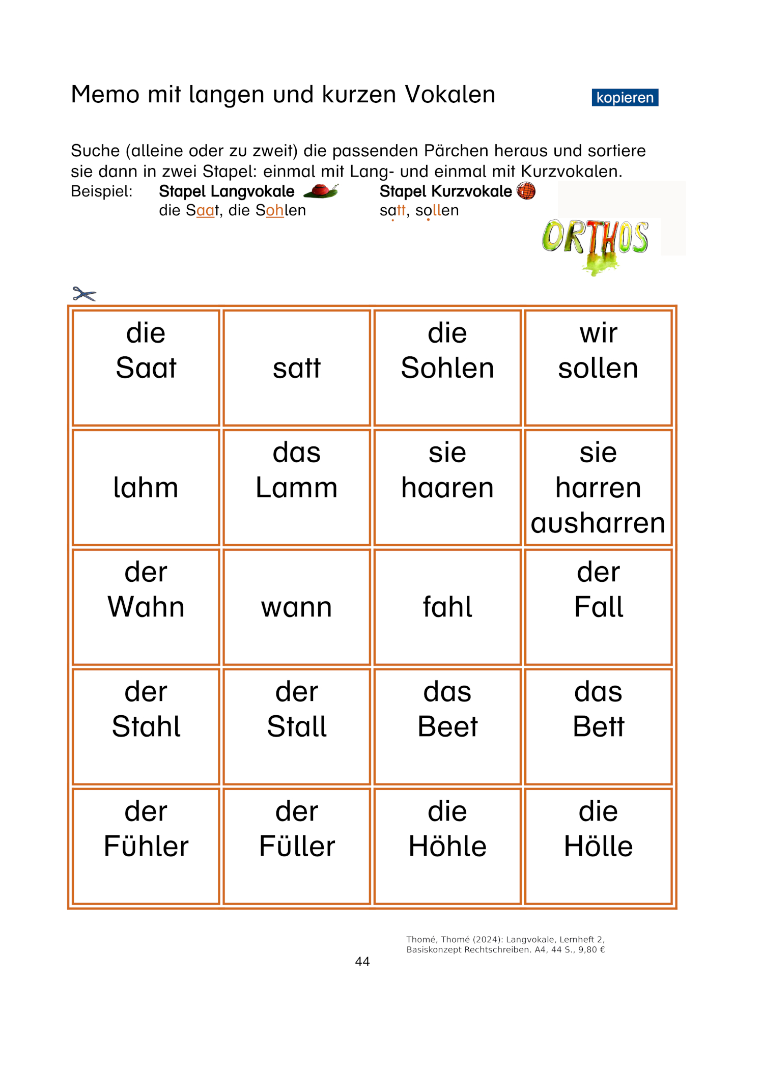 "Hilfreich ist hier das Heft `Langvokale´ aus dem isb Verlag, in dem diese Besonderheiten richtig schön und systematisch behandelt und Übungsmöglichkeiten angeboten werden." (der Lesekoch, unter https://der-lesekoch.de/?mailpoet_router&endpoint=view_in_browser&action=view&data=WzI1LCJmZmM4YjUzN2RiOTYiLDksImRhZDA4ZiIsMTgsMF0 )