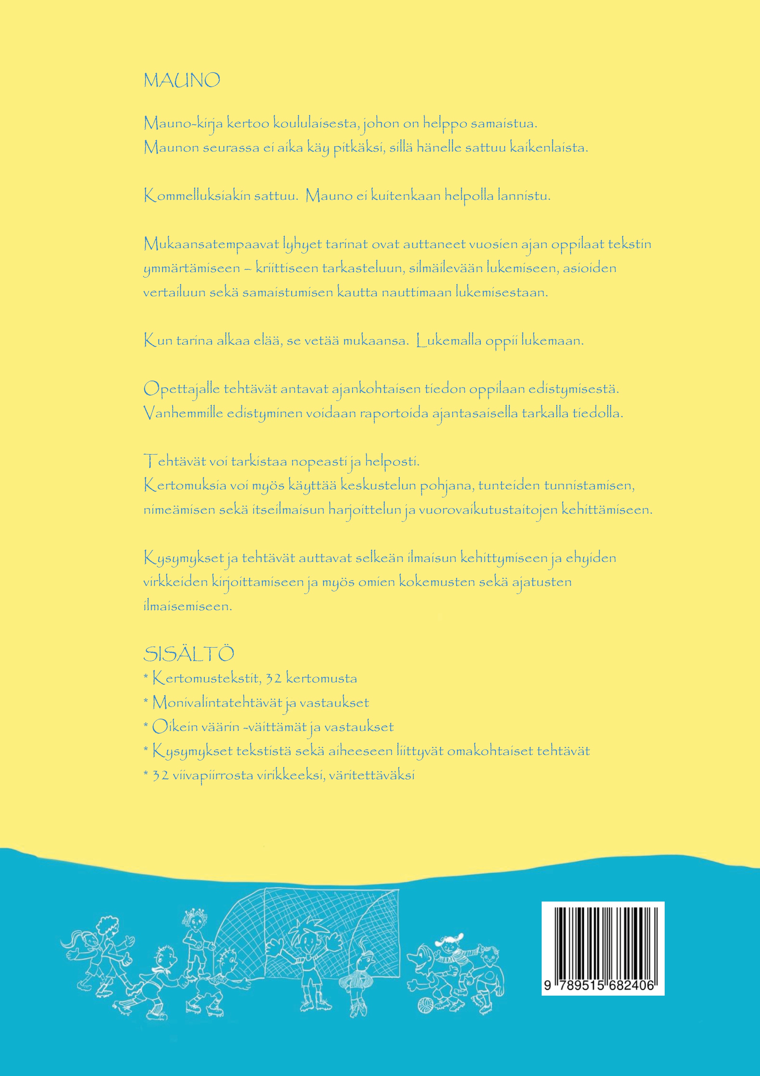 Mauno on vilpittömän aito ja avoin. Tapahtumien yllättävät käänteet nostavat välillä tunteet pintaan Maunolla, kavereilla niin kuin isoveljelläkin. Kukin luku sisältää itsenäisen tarinan, jossa ehtii tapahtua monia käänteitä, yllätyksiä ja harmejakin. Tehtävien moninaisuus sekä iloinen kuvitus mahdollistavat oppilaille runsaasti harjoittelua.