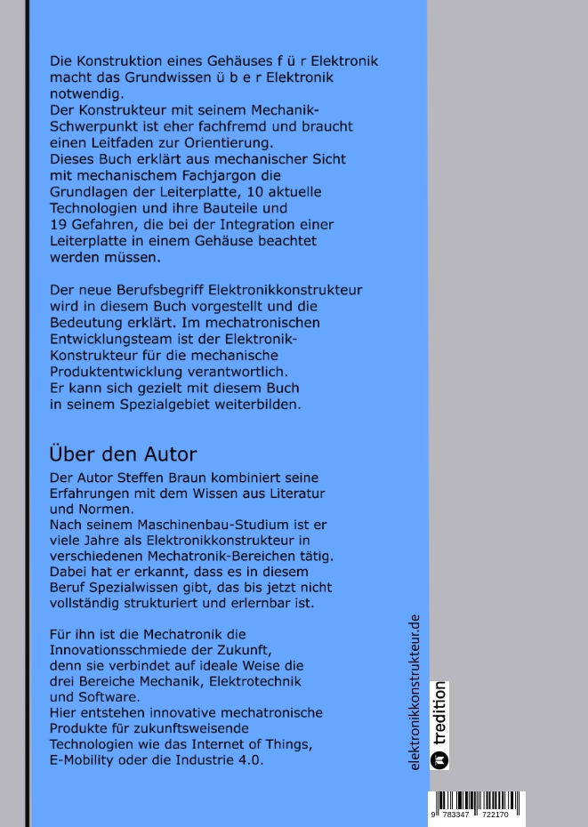 Wissen für den Konstrukteur in der Elektromechanik und Mechatronik. Man nennt ihn auch Elektronikkonstrukteur oder MCAD-Designer.In diesem Buch findest Du Spezialwissen für die Konstruktion von elektrischen oder elektronischen Geräten. Die Beschreibungen des elektrotechnischen Wissens wurden nur dort vertieft, wo es für die tägliche Arbeit notwendig ist. Ziel dieser Buchreihe sowie weiterer Wissensmedien soll sein, für den Elektronikkonstrukteur vollständiges, verständliches und anwendbares Wissen zur Verfügung zu stellen. Er kann es zur Weiterbildung, zur Vertiefung oder auch zur Unterstützung einer Fachlaufbahn als Fachexperte nutzen.