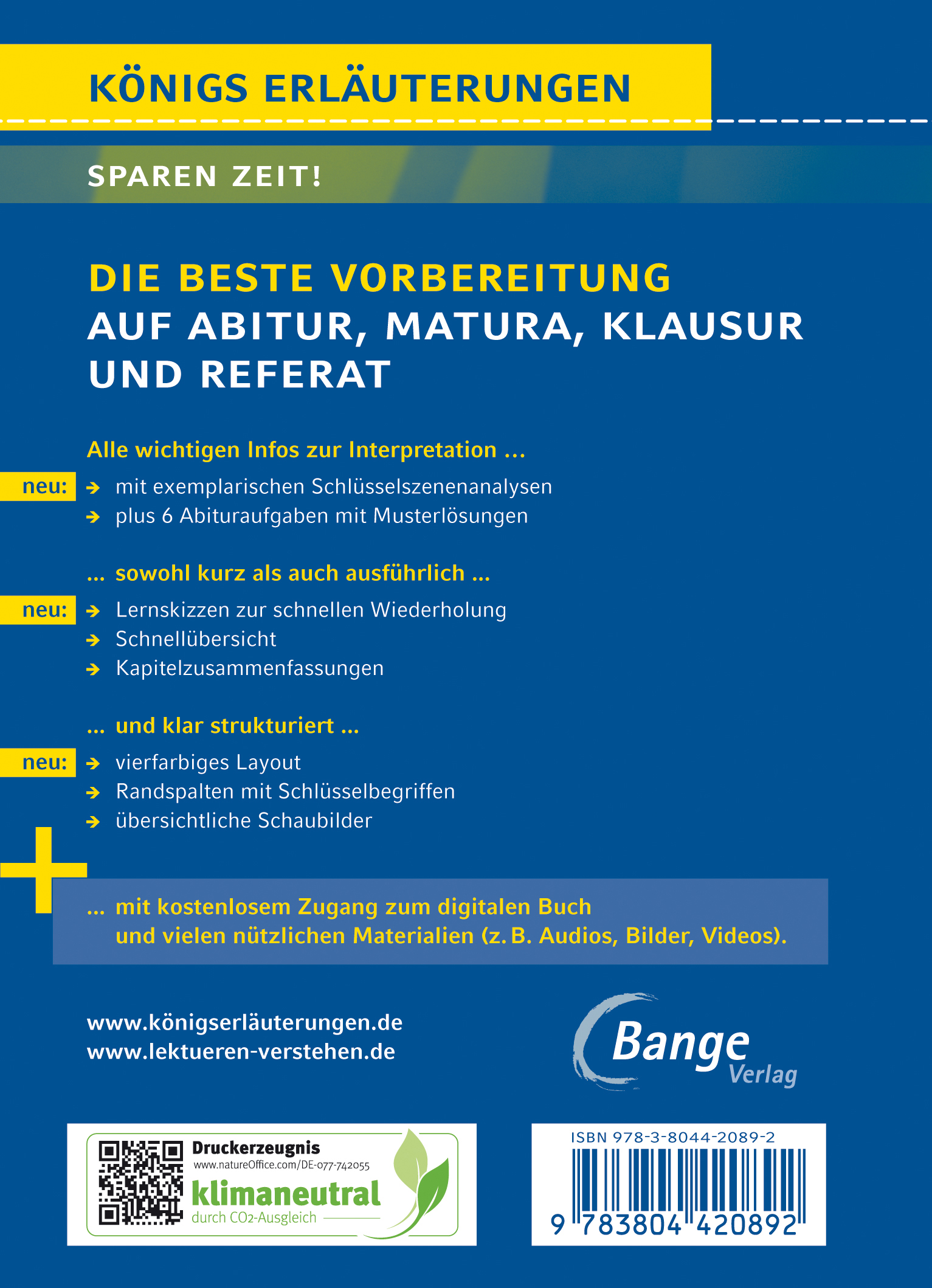 In diesem Band findest du alles, was du zur Vorbereitung auf Referat, Klausur, Abitur oder Matura benötigst ohne das Werk komplett gelesen zu haben.
