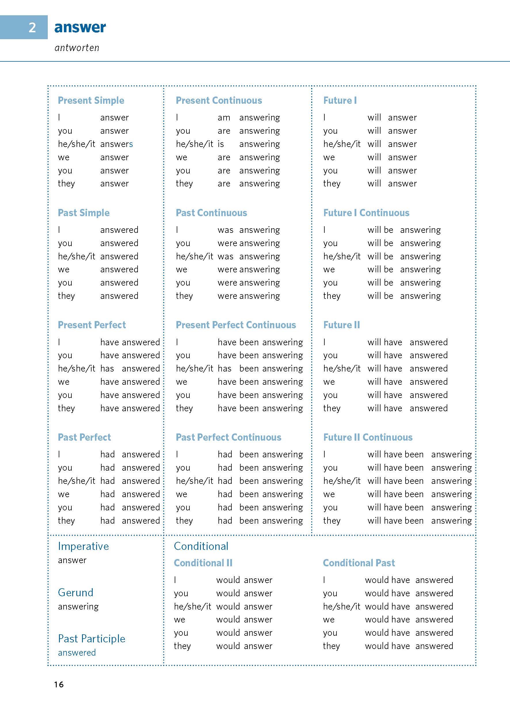 - Mit Grammatikteil und Übersetzung aller Verben ins Deutsche.