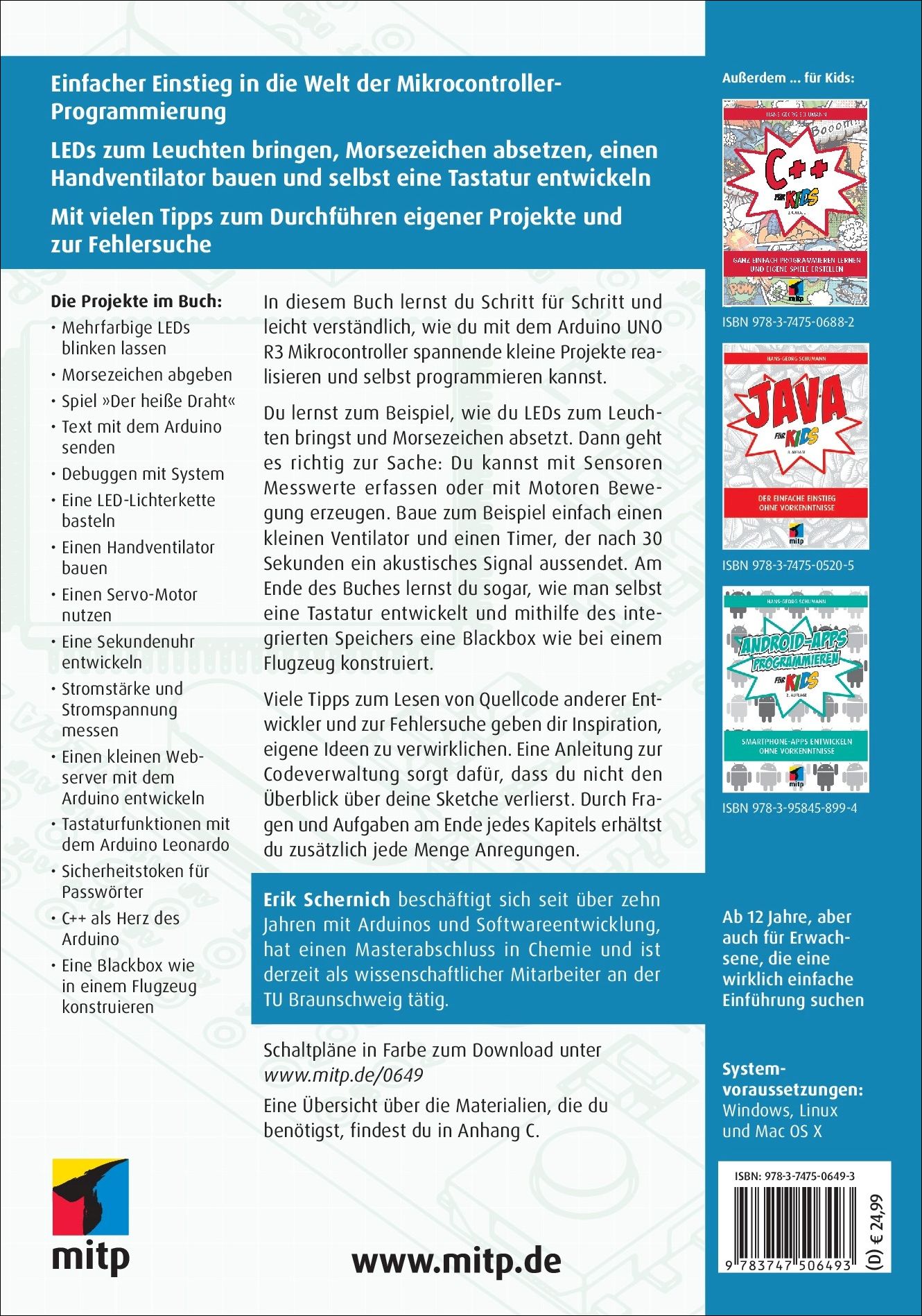 In diesem Buch lernst du Schritt für Schritt und leicht verständlich, wie du mit dem Arduino UNO R3 Mikrocontroller spannende kleine Projekte realisieren und selbst programmieren kannst.