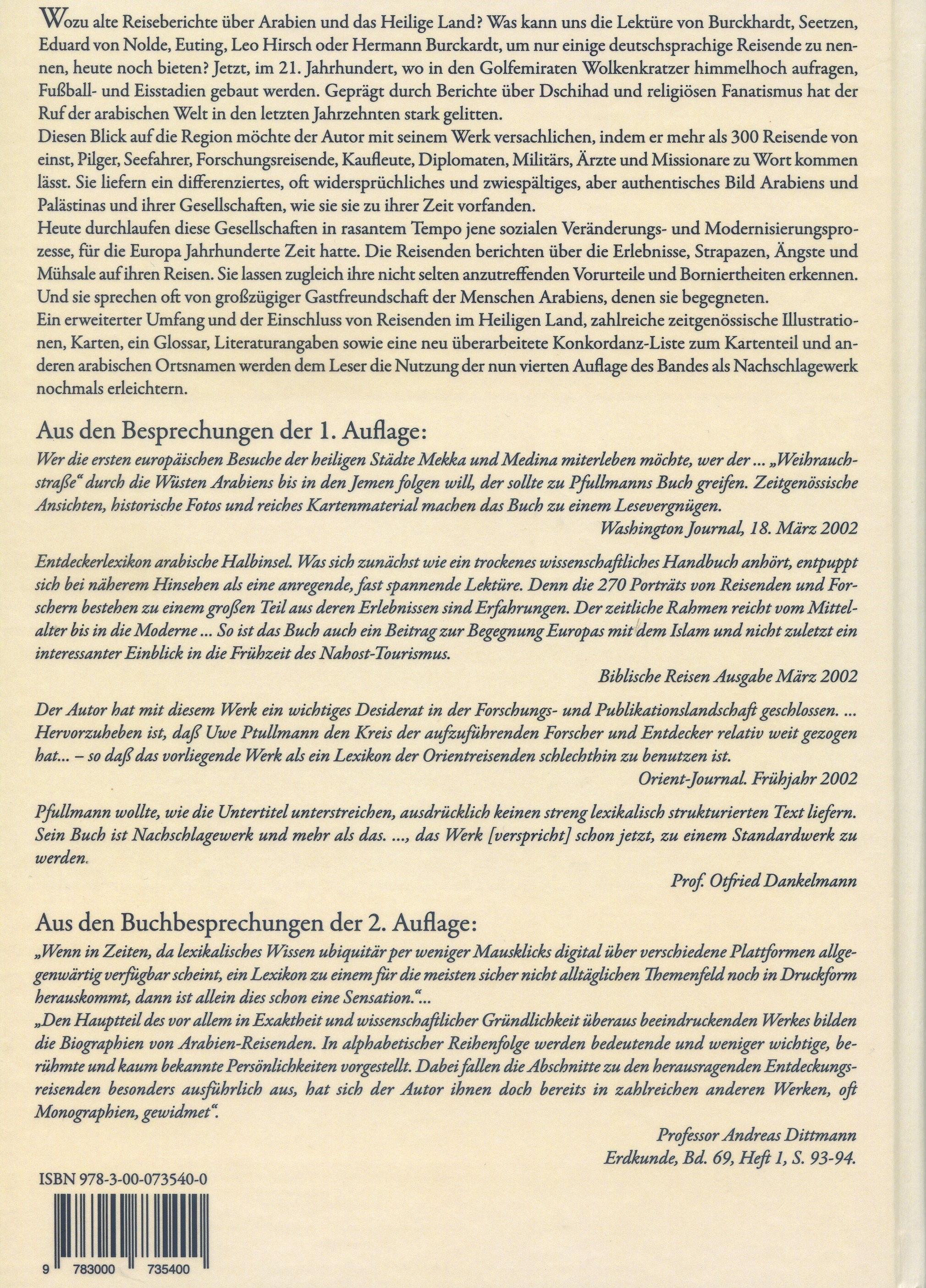 | Schlagworte | Entdeckerlexikon Arabiesche Halbinsel • Entdeckungsgeschichte Arabiens • Von aaronsohn bis Zwemer - Biografien und Berichte |