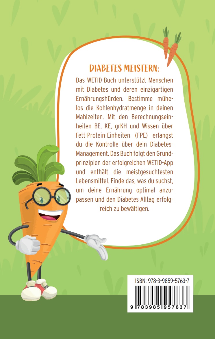 WETID goes old school“, also ein Buch zum Anfassen und Durchblättern. Als Heiko mir davon berichtete, war ich angetan von dieser Idee, denn nicht jeder ist oder möchte in jeder Situation digital sein. Für meine Tochter Nonie ist die zugehörige App perfekt, Generation Alpha halt, denn mit ihren zehn Jahren wird sie immer selbstständiger. Sie kommt dieses Jahr auf die weiterführende Schule und traut sich in Sachen Diabetes-Management immer mehr allein zu. Zum Teil erfahre ich gar nicht mehr, wenn sie sich für eine auswärtige Mahlzeit einen Bolus abgibt. Aber ich weiß, dass sie dafür WETID, die "Karotten-App“, wie wir sie im Alltag nennen, an ihrer Seite hat, und das gibt mir ein gutes Gefühl. "Cool, praktisch, spontan“, sagt Nonie dazu, "danke, dass ich sie benutzen kann, wenn ich mal irgendwie irgendwo bin." WETID in Papierform ermöglicht das ?eben mal nachschlagen“ auch ohne Digitalität, ist ja schließlich nicht jeder Alpha, und schließt somit eine wichtige Lücke: Institutionen wie Kitas und Grundschulen, nicht so App-affine Eltern und weitere Familienangehörige wie Großeltern oder befreundete Eltern und viele mehr spricht Heiko damit an. Dieses Nachschlagewerk kann man mal schnell mitnehmen, mitgeben oder sich dauerhaft ins Regal stellen, und ist sicher, dass die Angaben darin Hand und Fuß haben, denn Heiko ist ein Fuchs in Sachen Diabetes-Nährwerte aller möglichen Lebensmittel. Herzblut und Akribie werden bei ihm vereint, und der Anspruch, eine bestmögliche, userfreundliche Lösung zur Verfügung zu stellen. Nun also auch in Papierformat. Als ich mein erstes Diabetes-Buch schrieb, "Rock around the Clock mit Diabetes Typ 1 — aus dem turbulenten Familienalltag“, kannten Nonie und ich deine App leider noch nicht, lieber Heiko. Aber in meinem zweiten Buch mit dem (Arbeits)titel ?Break Free — Eigenständig werden mit Diabetes Typ 1“, das voraussichtlich im Frühjahr 2024 erscheint und Nonies Weg Schritt für Schritt hinein in die Eigenständigkeit in Sachen Diabetes-Management im Alltag schildert, spielt WETID eine wichtige Rolle. Ich nehme darin Eltern an die Hand, ihre Kinder in diese Selbstständigkeit zu begleiten und sie loszulassen, kontrolliert und mit Bedacht. Und da geht es natürlich auch um Lebensmittel, Nährwerte und den Umgang damit im Diabetes-Alltag. "Danke, Heiko, dass du uns darin so hervorragend unterstützt!“ (Maren Sturny, Autorin und Mutter von Nonie [10 J, T1D], Instagram @diabetesbluemchen) Die Diagnose Typ-1-Diabetes ist erstmal ein Schock. Auf einmal wird, wie ein Ernährungsexperte, die Nahrungsaufnahme analysiert: Kohlenhydrate möglichst genau zu zählen, ist eine Wissenschaft für sich, die jede Menge Zeit, Übung und Mathematik erfordert. Der Mensch mit Diabetes sollte gute Nachschlagewerke an die Hand bekommen, um die Mahlzeiten und Snacks adäquat einschätzen zu können. Es gibt unzählige Listen, Bücher und Apps, die dabei unterstützen, aber auch durch unterschiedliche Angaben und nicht alltagstaugliche Lebensmittel Verwirrung stiften können. Seit vielen Jahren als Diabetes-Beraterin DDG in der Kinderklinik unterstütze ich Kinder und ihre Familien in ihrem Diabetes-Management und empfehle gerne die "Möhren-App“ WETID. In meinen Schulungen beginne ich mit der Unterscheidung von kohlenhydrathaltigen und kohlenhydratfreien Lebensmitteln, die Einteilung in KE bzw. BE oder grKH sowie dem Abwiegen dieser. Wie sieht eine Kohlenhydrateinheit gekochter Reis auf dem Teller aus? Anhand der Nährwertanalyse bei verpackten Lebensmitteln können die enthaltenen Kohlenhydrate exakt ermittelt werden. Wie viel Kohlenhydrate enthält die Lieblings-Tiefkühlpizza? Mit Hilfe der WETID-App lassen sich so auch Rezepte genau ausrechnen. So können Vergleichswerte im Kopf geschaffen werden, die beim Restaurantbesuch oder in der Schulkantine angewandt werden können. Auf viele Dinge im Diabetes-Alltag lässt sich kein Einfluss nehmen: sei es Stress, eine anbahnende Krankheit, Ärger oder Wachstumsschübe. Auch die neuesten Technologien wie AID-Systeme sind (noch) auf die Eingabe der gegessenen Kohlenhydrate angewiesen. Ungenaue Kohlenhydratzählung können zu Hypoglykämien oder zu hohen Glukosewerten nach den Mahlzeiten führen, wenn das Insulin zu den Mahlzeiten zu niedrig oder zu hoch dosiert wurde. Kohlenhydrate berechnen und mit schnellwirksamem Insulin abzudecken, bleibt weiterhin der beste Weg, um die Glukosewerte im Zielbereich zu halten. Jessica Schmidt-Herzel, Diabetesberaterin DDG. Seit über 25 Jahren bin ich u.a. als Kinder- und Jugenddiabetologe in Aktion und habe verschiedenste "Quantensprünge“ in der Diabetologie vom Pen, über Pumpe zu CGM und AID mit durchlebt. Eine grosse Erleichterung für Eltern und Kids und oft auch eine tolle Verbesserung der Stoffwechselkontrolle. Aber die Umsetzungsprobleme sind über die Jahre die gleichen geblieben: messen, scannen, korrigieren, VOR dem Essen bolen und das alltägliche Dauerproblem: wieviel Insulin dafür? Schätzen? Wiegen? Pi mal Daumen? Hier ist die online "Karotten App“ und nun auch das Hosentaschenformat in Papier eine hilfreiche, niedrigschwellige Möglichkeit Alltagstücken zu minimieren. Ein Tool von einem betroffenen Papa eines Diabeteskindes, der sich voll hineinkniet und seinen Wissensfundus an andere Betroffene weitergibt. Er hat etwas Tolles aus dem Leben für das Leben entwickelt. Ich empfehle WETID allen meinen Diabetesfamilien wärmstens. Danke Heiko für die App und nun auch das Booklet! Horst Rütschle Facharzt für Kinder- und Jugendmedizin Diabetologe DDG Mutterstadt