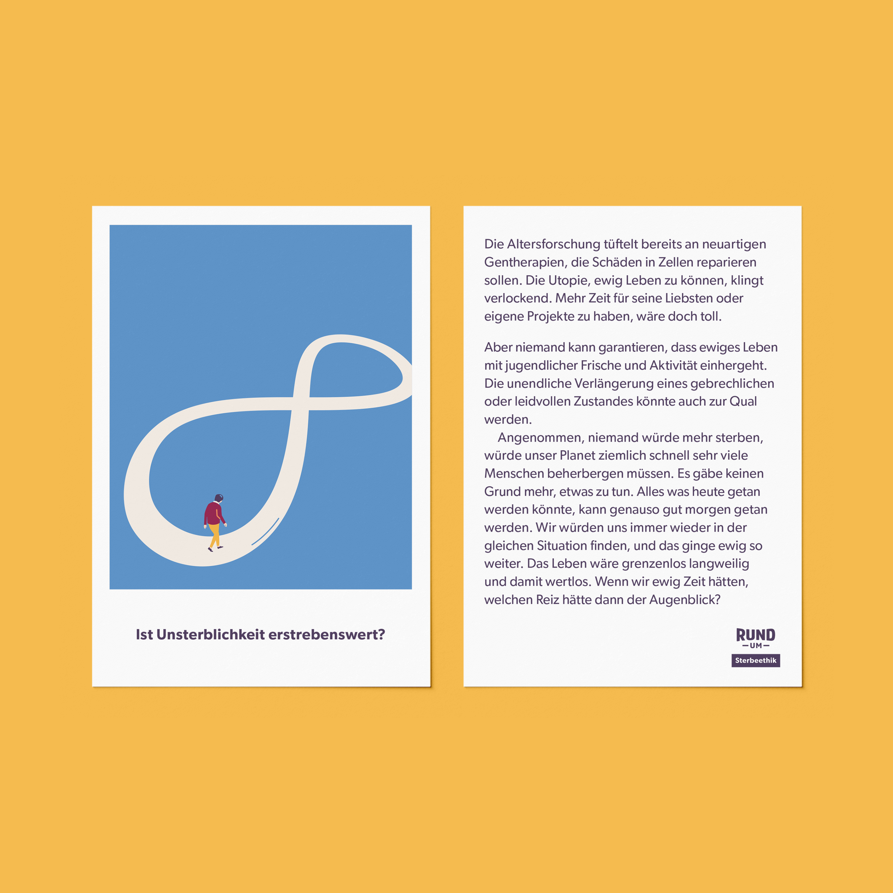 RUND UM ist eine Serie von Kartensets, die komplexes Gesundheitswissen lustvoll und kompetent vermitteln. Mit leicht verständlichen Illustrationen fördern sie eine offene und einfühlsame Kommunikation über schwierige Themen.