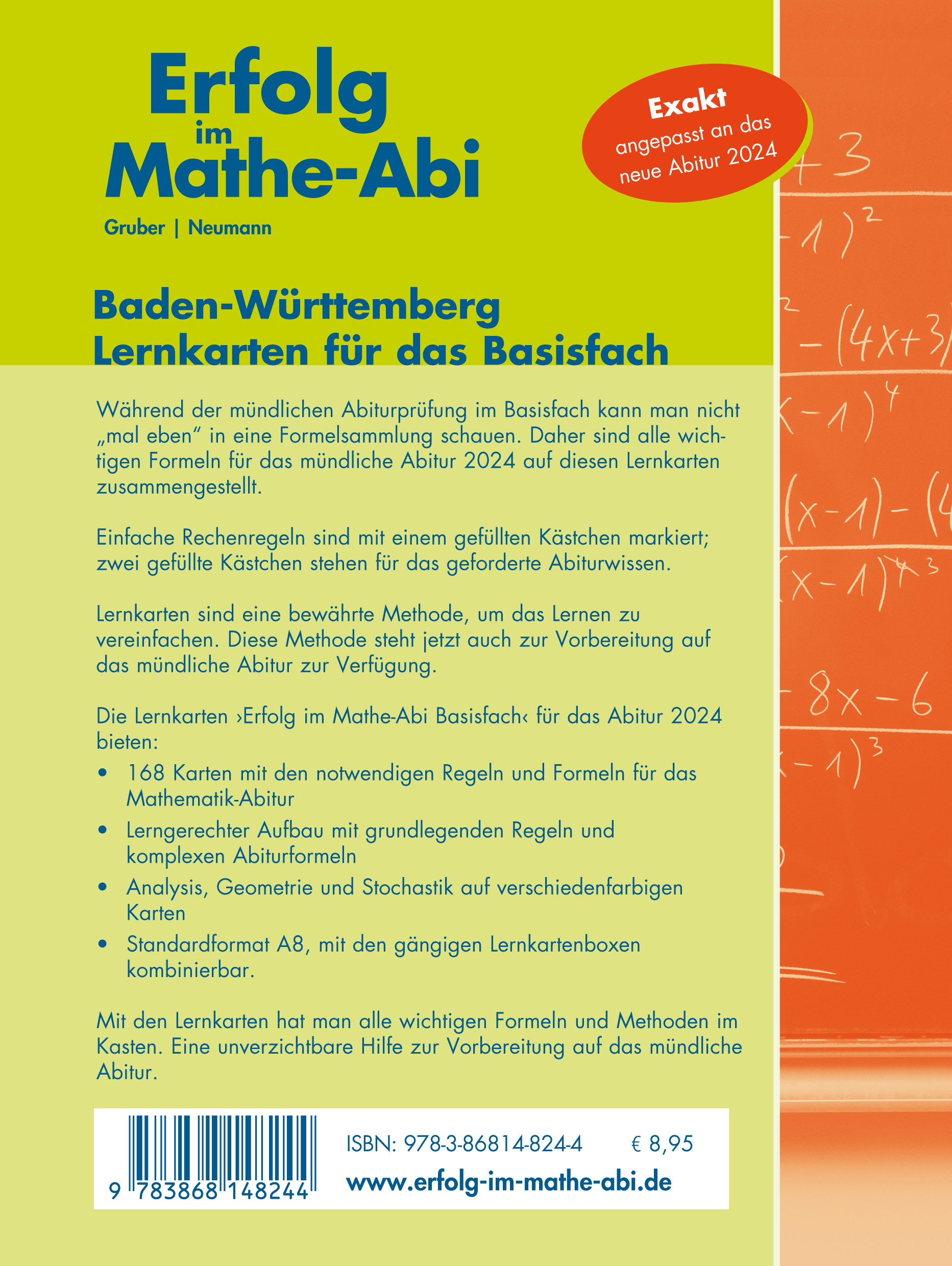 Erfolg im Mathe-Abi 2024, 168 Lernkarten Basisfach Allgemeinbildendes Gymnasium Baden-Württemberg
