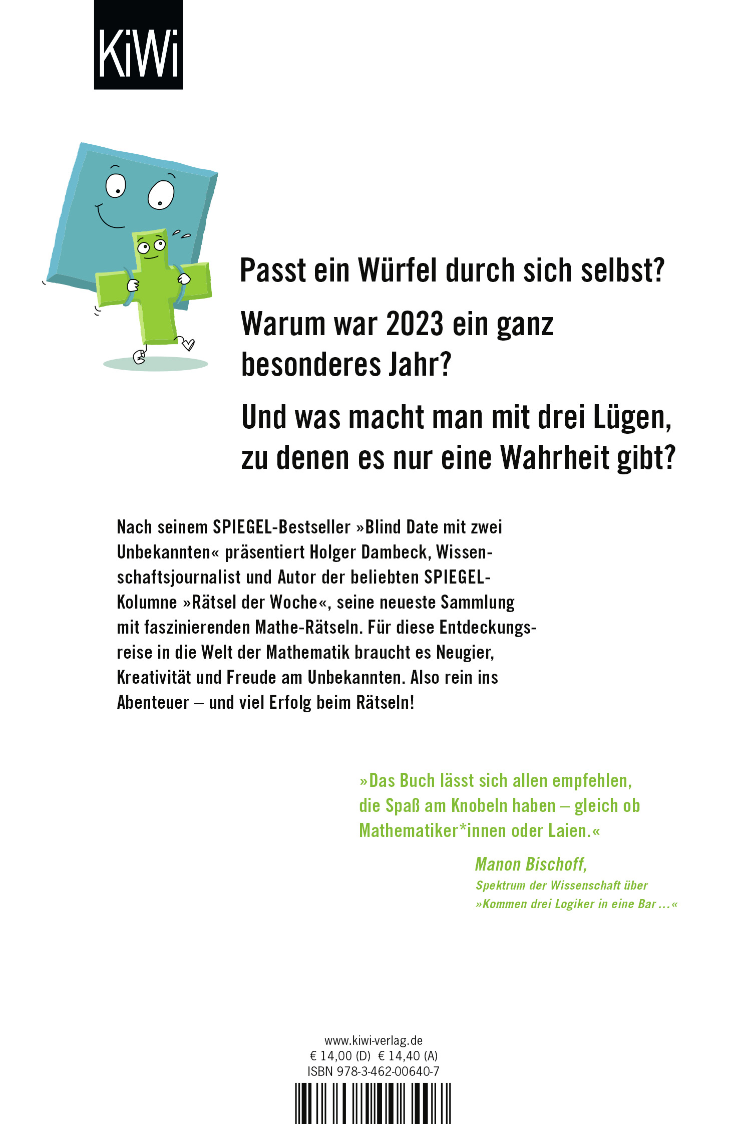 Passt ein Würfel durch sich selbst? Warum ist 2023 ein besonderes Jahr? Und was macht man bei drei Lügen, zu denen es nur eine Wahrheit gibt? In seinem neuen Buch präsentiert der Wissenschaftsjournalist und Mathe-Autor Holger Dambeck 100 neue Rätsel, die zum Denken und Knobeln anregen.
