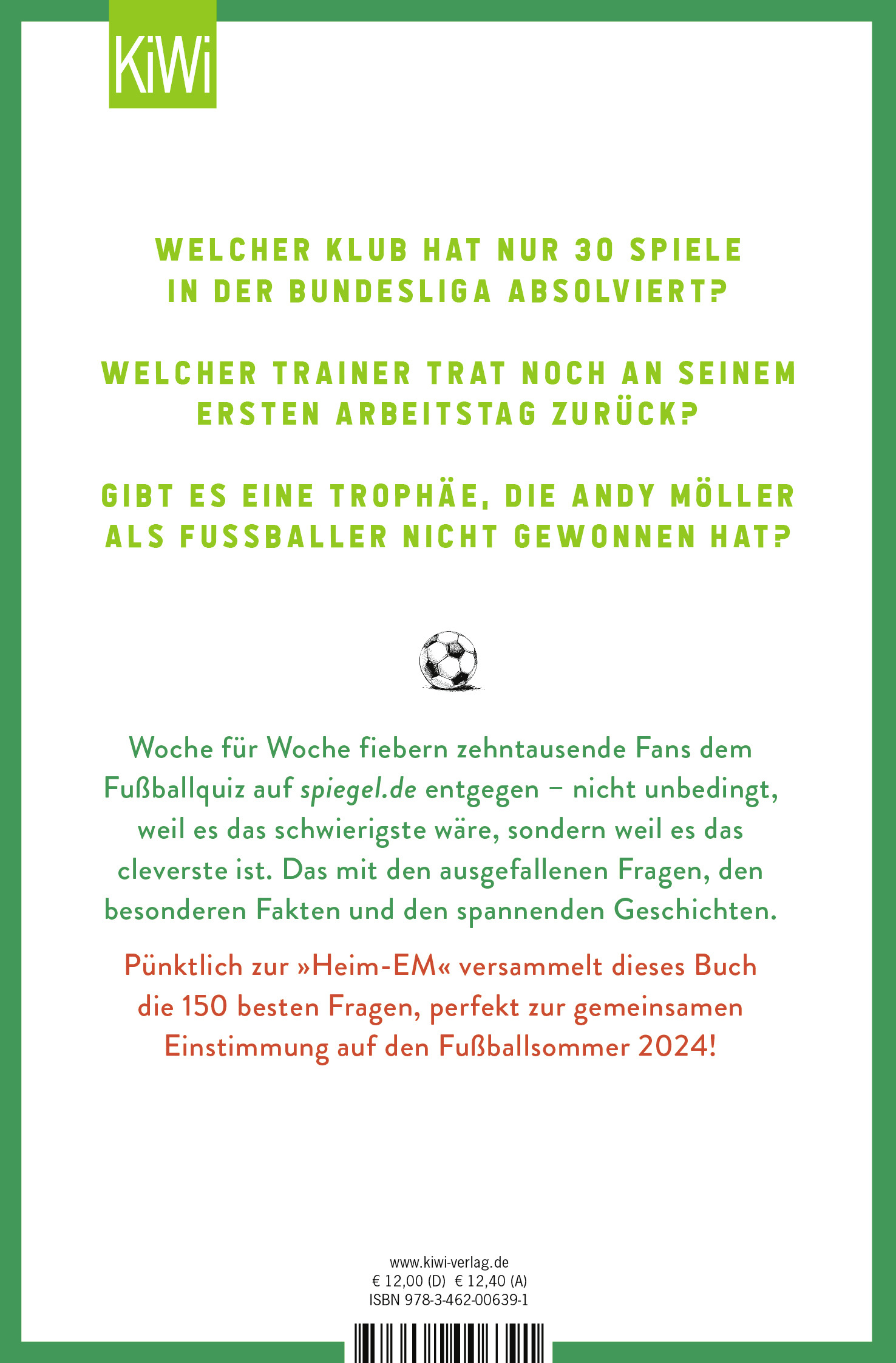 Pünktlich zur »Heim-EM« stellt Marco Fuchs die 150 besten Fragen zusammen, in zehn Kategorien und drei Schwierigkeitsstufen. Perfekt geeignet fürs entspannte Rätseln in der Halbzeitpause oder am Küchentisch, aber auch für den Quizabend zur gemeinsamen Einstimmung auf den Fußballsommer 2024!