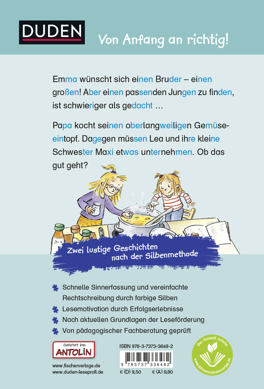 | Schlagworte | Antolin • Antolin erste Klasse • Antolin Lesebuch • Bücher für Erstleser • Duden Leseprofi • Einschulung • Erstlesebuch • Erstlesen • Erstleser • Geschenk Einschulung • Geschenk für Enkelkind • Geschenk zum Schulanfang • Geschichten für Erstleser • Geschichten mit Silbentrennung • Geschichten über Geschwister • Geschwistergeschichten • Leseanfäger • Lesebuch • Leseförderung • Leselöwe • Lesemaus • Lesen lernen • lesen lernen 1. Klasse • Lesen lernen Vorschule • Leserabe • Lies mal • Mildenberger Silbenmethode • Pisa • Silbe • Silbengeschichten • Silbenlesen • Silbenmethode |