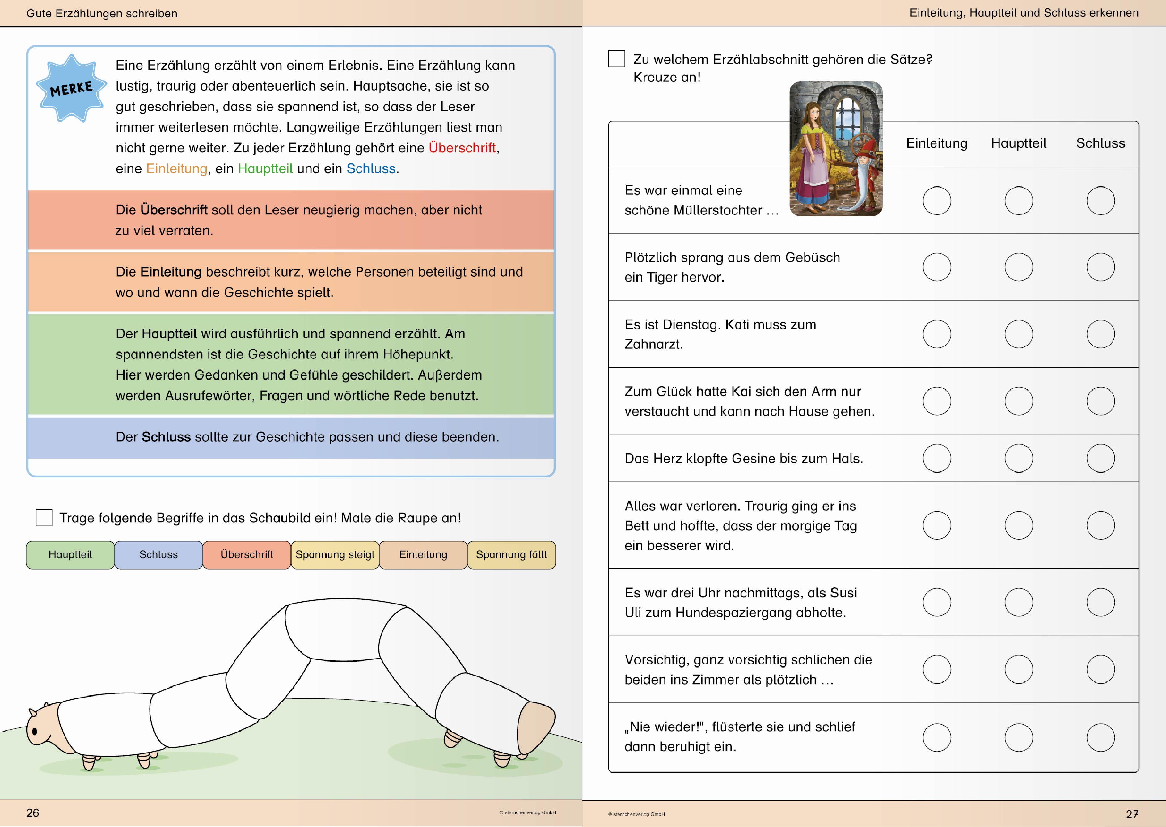 Ich kann Geschichten schreiben Teil 1 und 2 - Setpreis Ich kann Geschichten schreiben Teil 1:Das Sternchenheft "Ich kann Geschichten schreiben - Teil 1" dient dem selbstständigen Schreiben von Geschichten und deren Vor- und Nachbereitungen. Es bietet Schreibanlässe zu folgenden Bereichen:BildergeschichteNacherzählungFantasiegeschichteBerichtReizwortgeschichteSteckbriefBriefErzählbilderDie Ausdrucksfähigkeit und die sprachliche Treffsicherheit werden durch zusätzliche Übungen gefördert.Ich kann Geschichten schreiben Teil 2:Neben dem Schülerarbeitsheft "Ich kann Geschichten schreiben Teil 1", welches die Vor- und Nachbereitung von Bildgeschichten, Nacherzählungen, Fantasiegeschichten, Berichten, Reizwortgeschichten, Steckbriefen, Briefen und Erzählbildern behandelt, wird in Teil 2 das Schreiben zu folgenden Bereichen geübt:RezepteSachtexteBauwerkbeschreibungenWegbeschreibungenErlebniserzählungenDurch intensive Übungen wird die Ausdrucksfähigkeit und die sprachliche Treffsicherheit erlernt. Durch das kostengünstige Angebot entfallen lästige Kopierarbeiten. 50 Seiten, A4