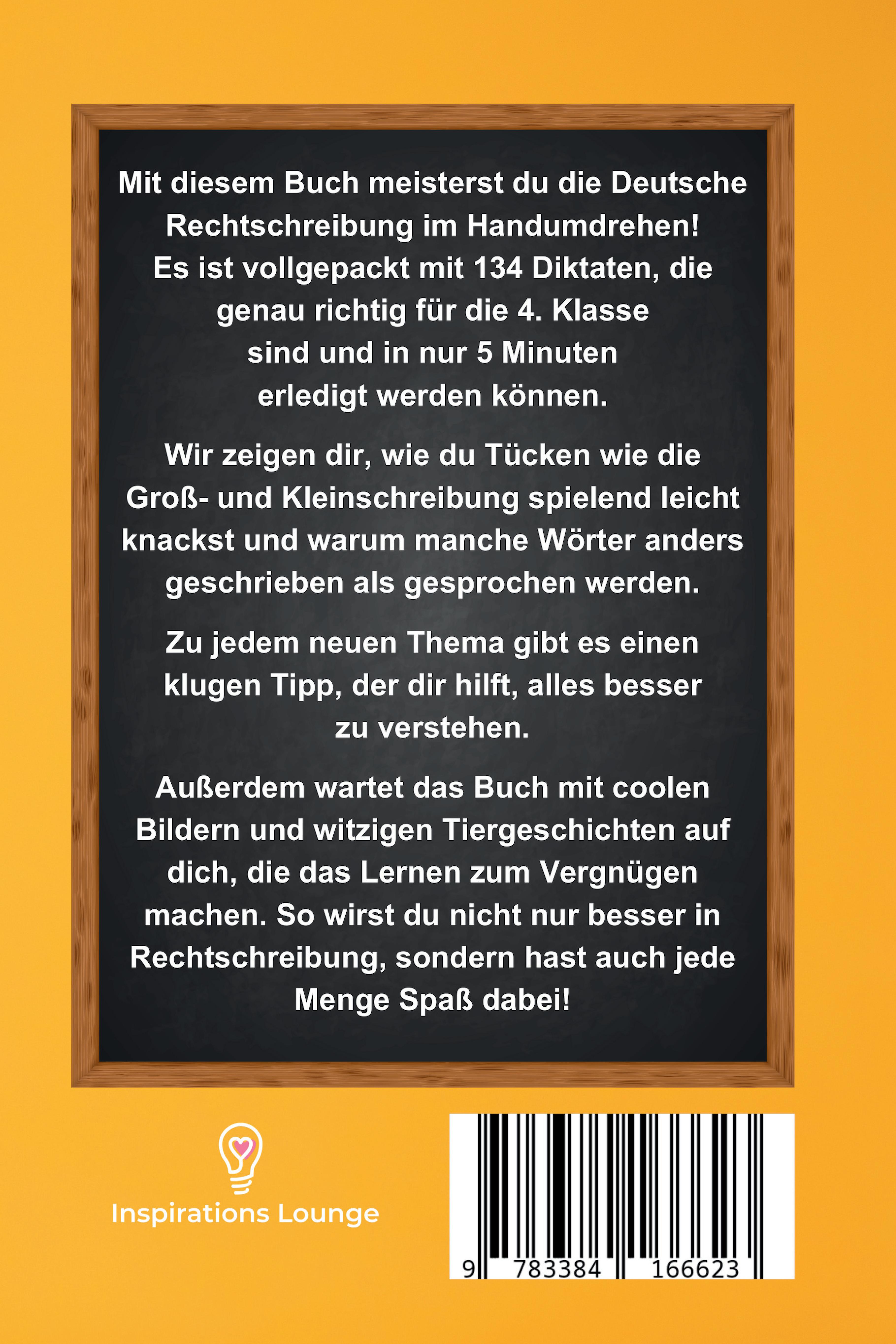 Diktate 4. Klasse! Deutsche Rechtschreibung ganz einfach und spielerisch lernen! 134 pädagogische 5 Minuten Diktate!Deutsche Rechtschreibung kann eine Herausforderung sein, doch mit dem richtigen Werkzeug wird sie zum Kinderspiel. Dieses Buch, in Zusammenarbeit mit erfahrenen Grundschullehrern erstellt, bietet eine Sammlung von 134 pädagogisch wertvollen Diktaten, die speziell für Schüler der 4. Klasse konzipiert sind. Jedes Diktat ist so gestaltet, dass es innerhalb von fünf Minuten bearbeitet werden kann, wodurch die Lerneinheiten kurz, intensiv und effektiv sind.Mit einem klaren Fokus auf die häufigsten Stolpersteine der deutschen Rechtschreibung, wie die korrekte Groß- und Kleinschreibung, die Unterscheidung ähnlich klingender Laute und die richtige Anwendung von Satzzeichen, legt dieses Buch den Grundstein für eine sichere Beherrschung der Rechtschreibung. Spezielle Tipps zu Beginn jedes neuen Themas erleichtern das Verständnis der Regeln und fördern ein tiefgreifendes Lernen.Um das Lernerlebnis nicht nur lehrreich, sondern auch unterhaltsam zu gestalten, sind die Seiten mit farbenfrohen Bildern und fesselnden Anekdoten aus der Tierwelt illustriert. Diese spielerische Komponente motiviert die Kinder, dran zu bleiben und ihre Rechtschreibfähigkeiten mit Freude zu verbessern.Bereiten Sie Ihr Kind mit diesem Buch auf den Erfolg in der Schule und darüber hinaus vor. Es bietet alles, was Schüler der 4. Klasse benötigen, um die deutsche Rechtschreibung sicher zu meistern und die Freude am Schreiben zu entdecken.