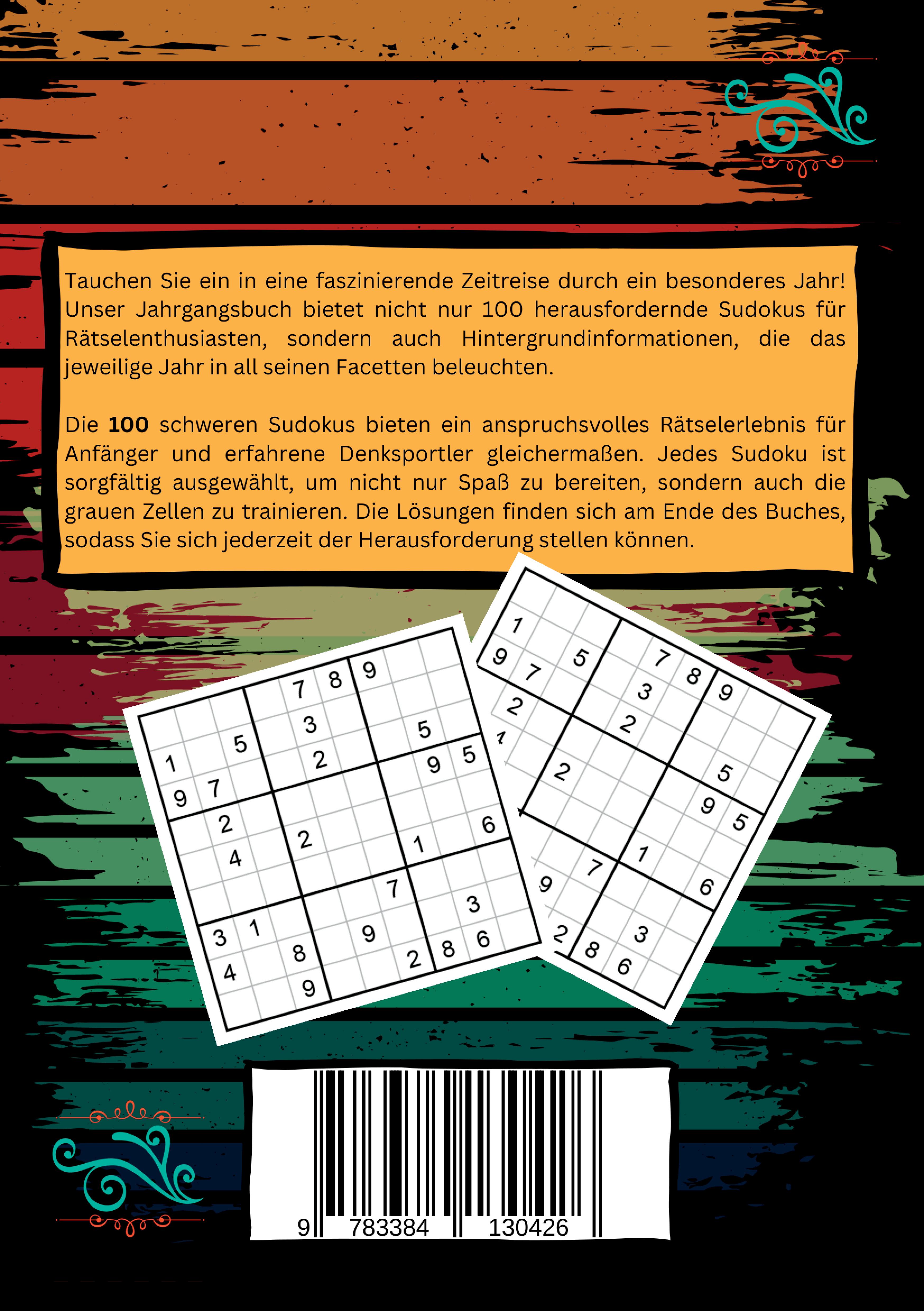Tauchen Sie ein in eine faszinierende Zeitreise durch ein besonderes Jahr! Unser Jahrgangsbuch bietet nicht nur 100 herausfordernde Sudokus für Rätselenthusiasten, sondern auch Hintergrundinformationen, die das jeweilige Jahr in all seinen Facetten beleuchten. 100 schwere Sudokus bieten ein anspruchsvolles Rätselerlebnis für Anfänger und erfahrene Denksportler gleichermaßen. Jedes Sudoku ist sorgfältig ausgewählt, um nicht nur Spaß zu bereiten, sondern auch die grauen Zellen zu trainieren. Die Lösungen finden sich am Ende des Buches, sodass Sie sich jederzeit der Herausforderung stellen können.Doch dieses Buch ist mehr als nur ein Rätselspaß - es ist eine Zeitkapsel für Ihr gewähltes Jahr. Tauchen Sie ein in die historischen Ereignisse und kulturellen Meilensteine, die das Jahr geprägt haben. Von bedeutenden politischen Ereignissen über kulturelle Trends bis hin zu bewegenden sportlichen Geschichten - all diese Aspekte sind in unserem Jahrgangsbuch vereint."Das Jahrgangsbuch: Rätselspaß und Zeitreise" ist nicht nur eine Herausforderung für den Geist, sondern auch eine einzigartige Reise durch die Geschichte. Gönnen Sie sich selbst oder einem besonderen Menschen dieses einzigartige Geschenk, das Unterhaltung, Wissen und nostalgische Momente vereint.