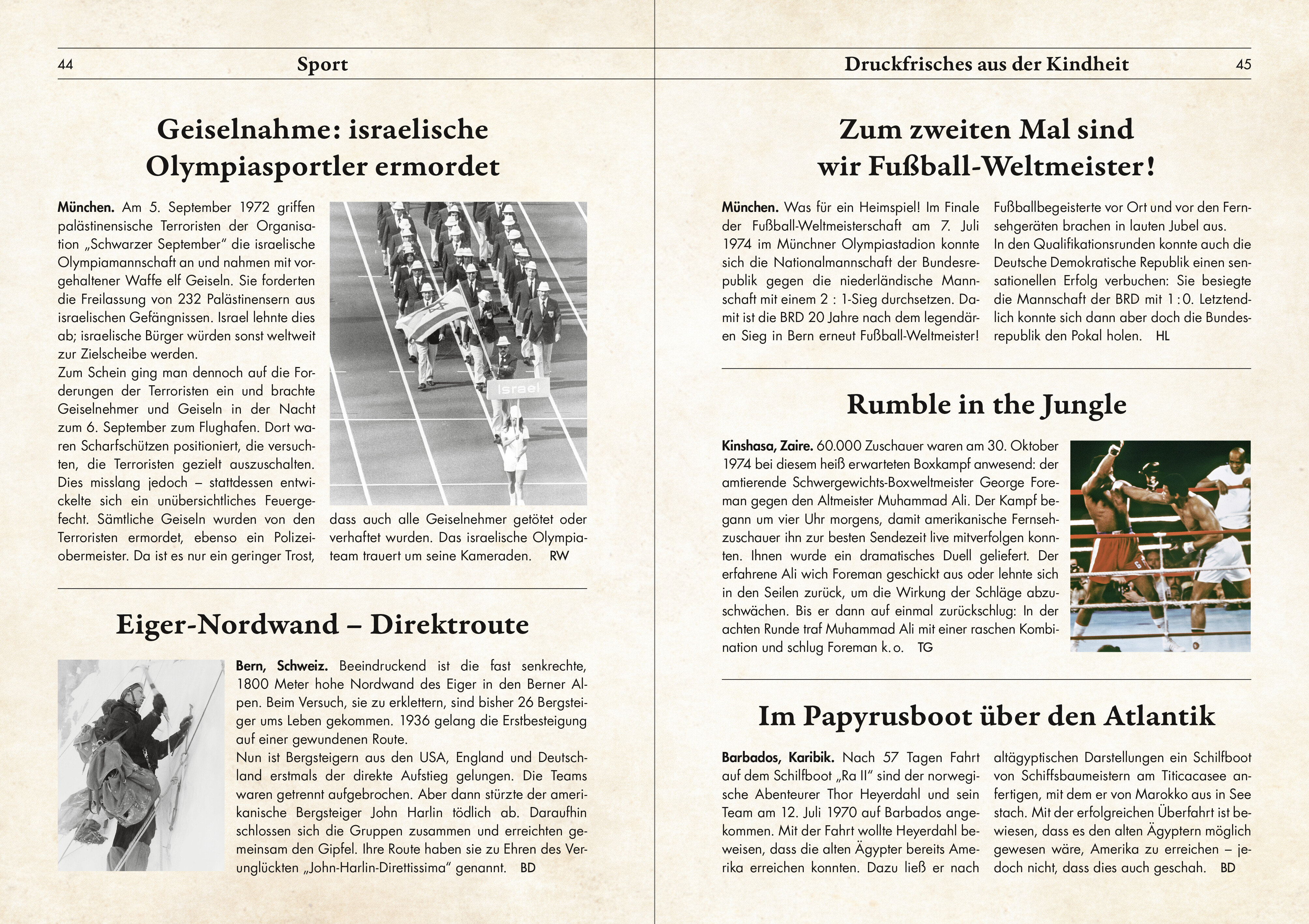 Schenken Sie eine ganz persönliche Zeitreise durch die Jahre der Kindheit und Jugend. Was war los in den 60er und 70er Jahren? Welche Schlagzeilen gingen um die Welt? Wie verbrachten die Menschen ihren Alltag? Was waren die Trends in Musik, Kino und Mode?