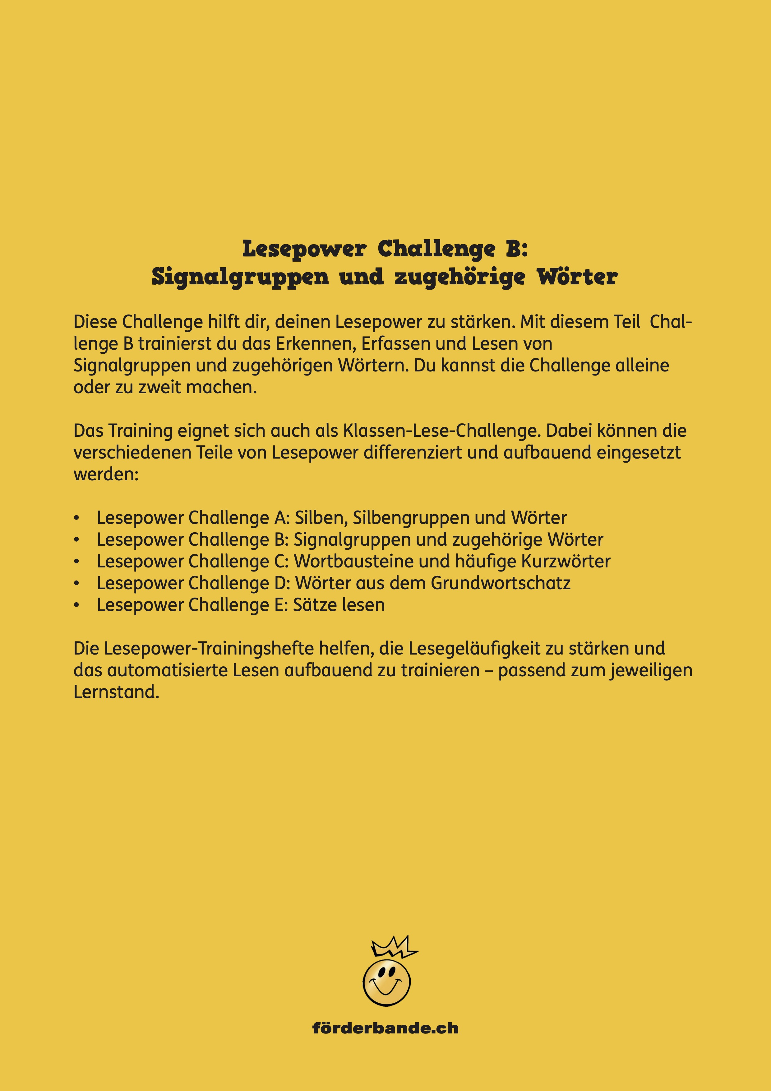 Lesepower! Challenge B - Signalgruppen und zugehörige Wörter