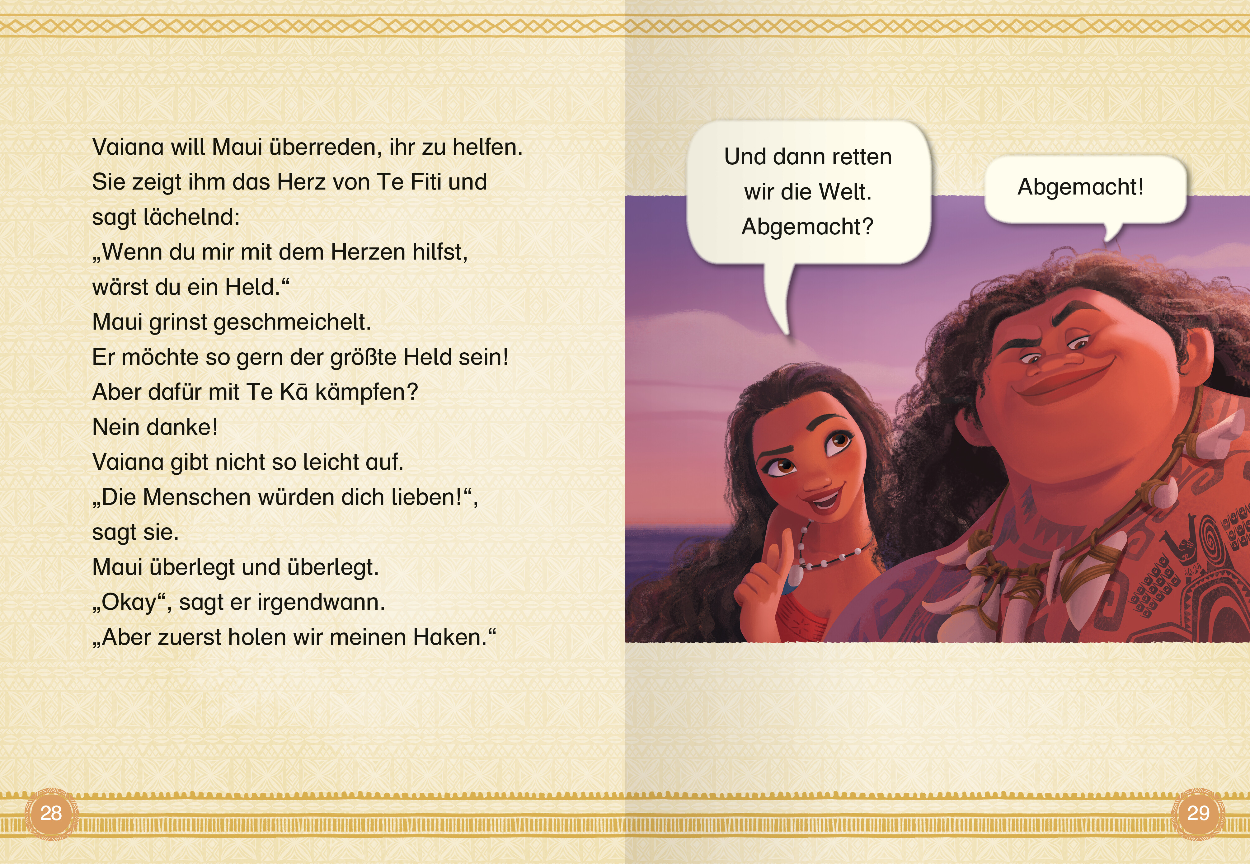 Die ganze Film-Geschichte von Disneys Vaiana 1 als Kinderbuch ab 7 Jahre Vaiana lebt auf einer wunderschönen Insel. Eines Tages welken alle Pflanzen und die Menschen haben nicht mehr genug zu essen. Der Halbgott Maui soll Vaiana helfen, ihre Heimat zu retten. Doch der ist ganz anders als sie erwartet hat. Da hilft nur eins: Mutig nimmt sie ihr Schicksal selbst in die Hand. Dieses spannende Erstlesebuch erzählt die ganze Geschichte des Disney-Films "Vaiana" in einfachen Sätzen und kurzen Kapiteln mit vielen Bildern aus dem Film. Wie haben sich Vaiana und Maui eigentlich kennengelernt? Basierend auf dem beliebten Disney-Film von 2016 erzählt dieses Erstlesebuch die ganze, lustige Geschichte für Kinder ab 7 Jahren: Vaiana trifft auf den angeberischen Halbgott Maui, der seinen größten Fehler so gar nicht einsehen will. Zum Glück erkennt Vaiana, was Maui wirklich will, und kann ihn überzeugen, ihr zu helfen. Doch damit ist es noch längst nicht geschafft, denn die größte Herausforderung wartet noch auf sie: Der Kampf gegen eine mächtige Dämonin.