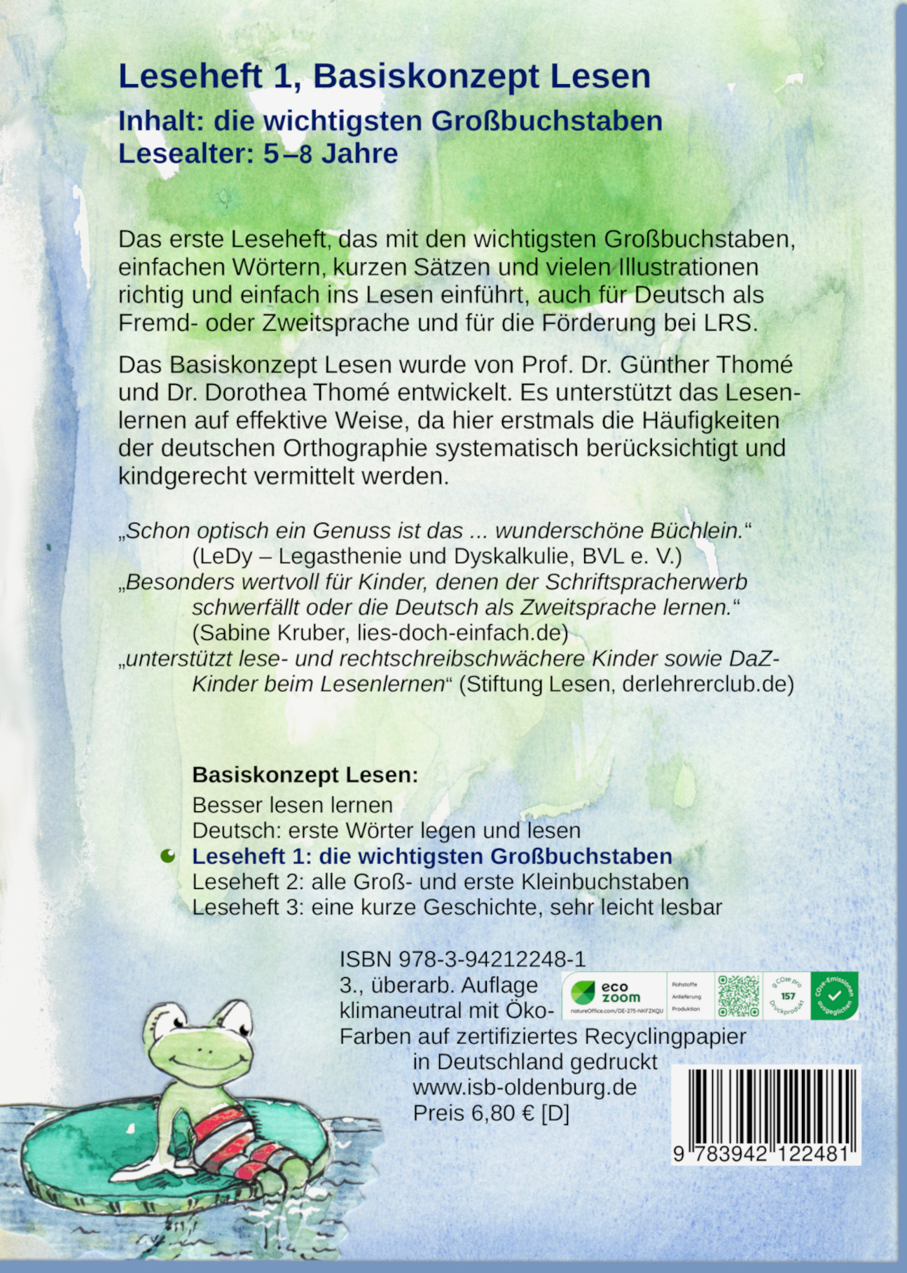| Schlagworte | Basisgrapheme • Basiskonzept Lesen • Basisschreibungen • DAF • DAZ • Deutsch als Zweitsprache • erstes Lesealter • Erstes Lesen • Großbuchstaben • Legasthenie • Leseförderung • Leseheft 1 • Lesen • LRS • richtig einfach lesen • Schriftspracherwerb • Vorschule |