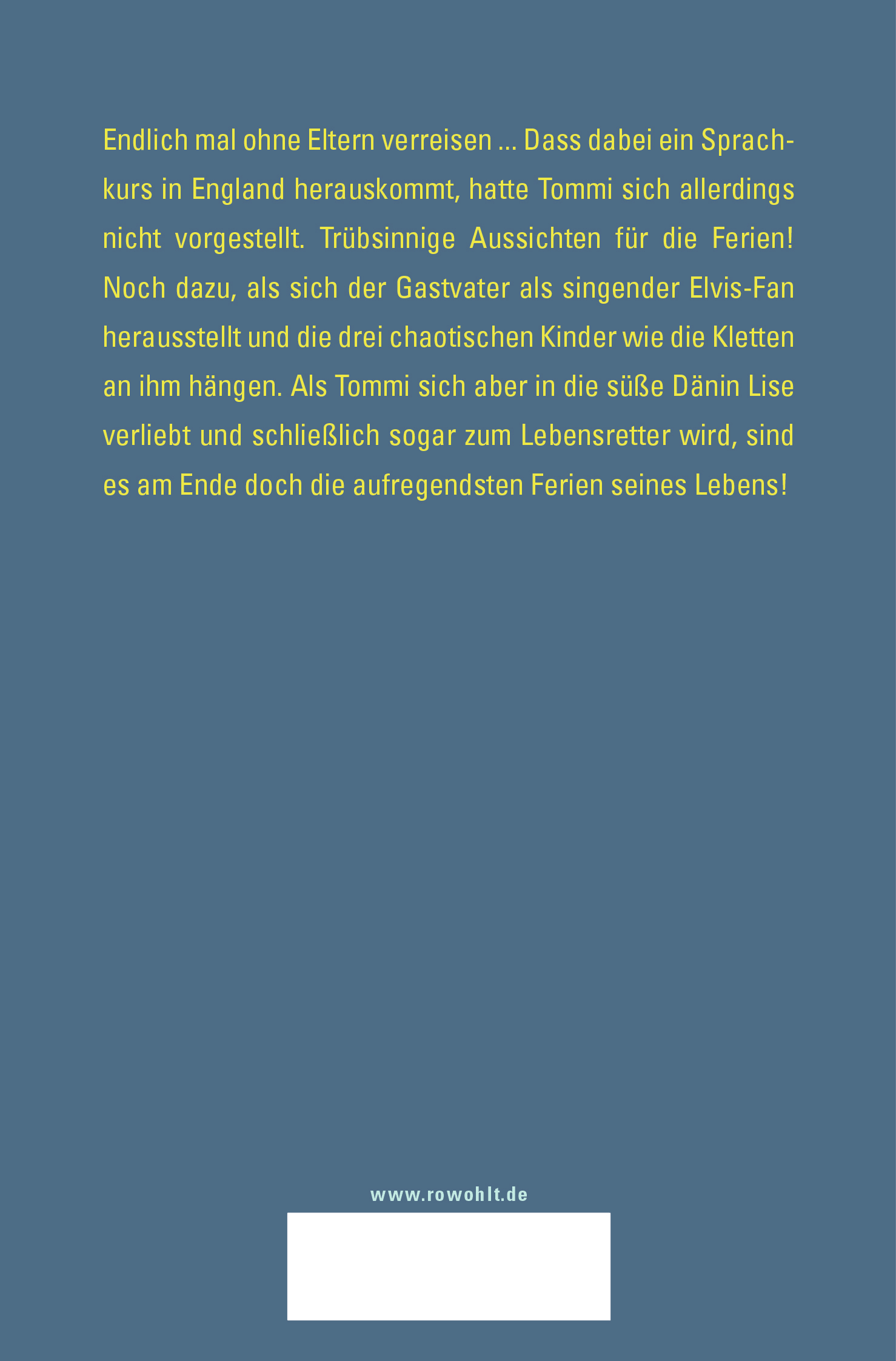 kurs in England herauskommt, hatte Tommi sich allerdings nicht vorgestellt. Trübsinnige Aussichten für die Ferien! Noch dazu, als sich der Gastvater als singender Elvis-Fan herausstellt und die drei chaotischen Kinder wie die Kletten an ihm hängen. Als Tommi sich aber in die süße Dänin Lise verliebt und schließlich sogar zum Lebensretter wird, sind es am Ende doch die aufregendsten Ferien seines Lebens!