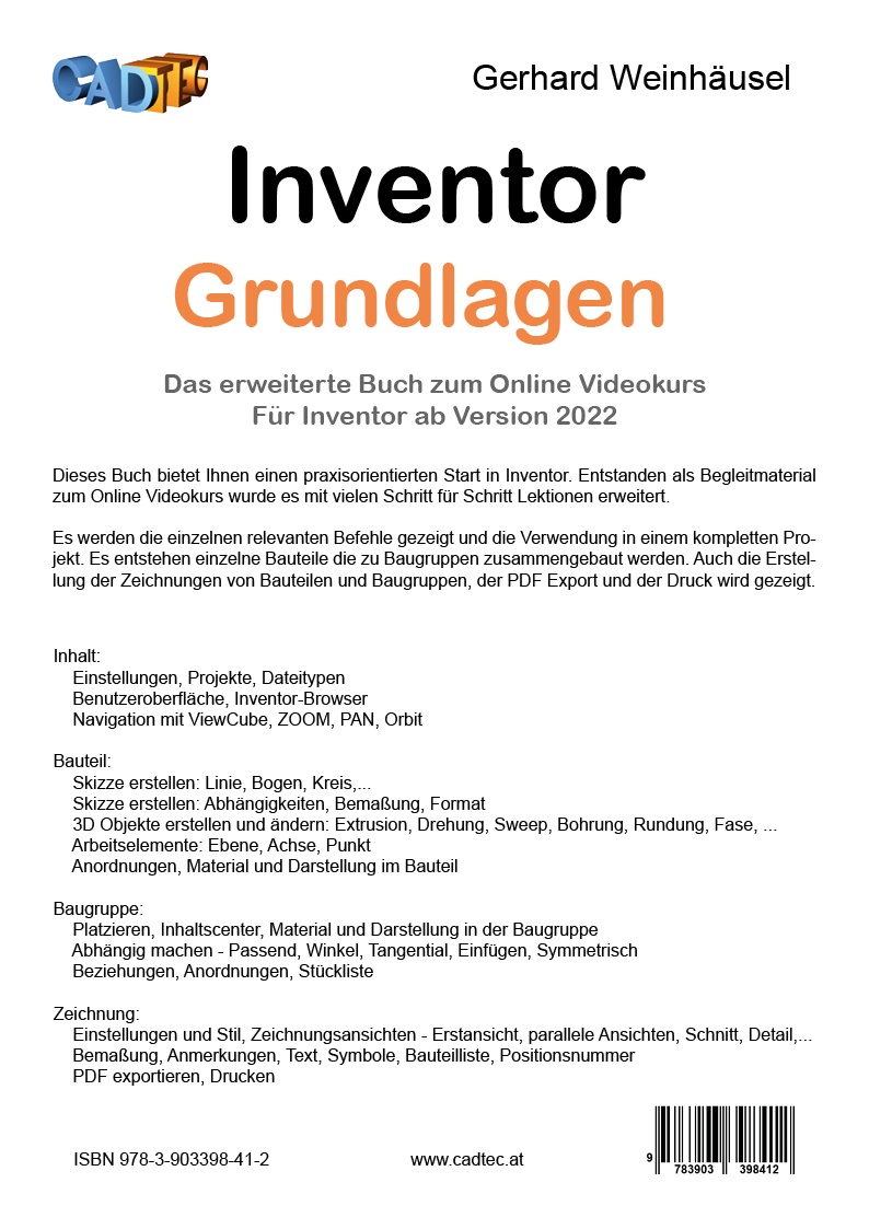 | Schlagworte | 2022 • 2023 • 2024 • 2025 • CAD • Handbuch • Inventor • Kurs • Schulung • Selbststudium |