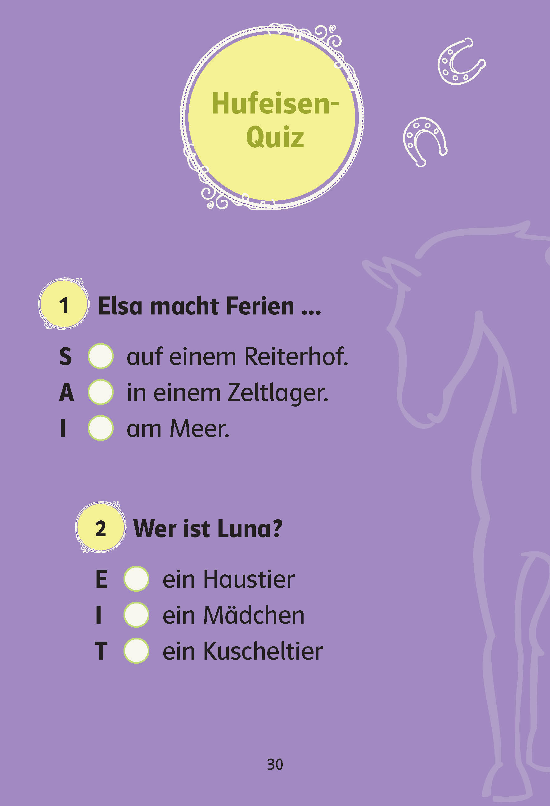- Unterstützt wird der Leselern-Prozess durch ein Hufeisen-Quiz, das Fragen zum Textverständnis spielerisch überprüft.