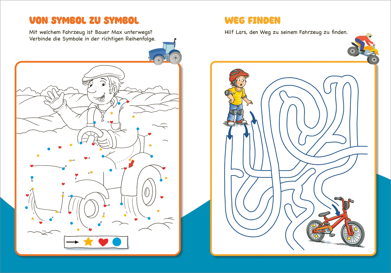 Traktor, Bagger, Rennauto: In diesem Mal- und Rätselheft dreht sich alles um Fahrzeuge. Da verbinden sich geheimnisvolle Symbole zu einem Polizeiauto und auf der Baustelle bei Kipplaster und Bagger haben sich fünf Fehler versteckt. Wie kann man Schritt für Schritt einen Hubschrauber zeichnen? Und wie gehören die Bilder des Autos in die richtige Reihenfolge? Mit diesem Mal- und Rätselheft zum Lieblingsthema Fahrzeuge ist Spaß und Abwechslung für Kinder ab 3 Jahren garantiert. Ganz nebenbei wird mit den vielen bunten Rätseln auch Feinmotorik und Konzentration geübt.