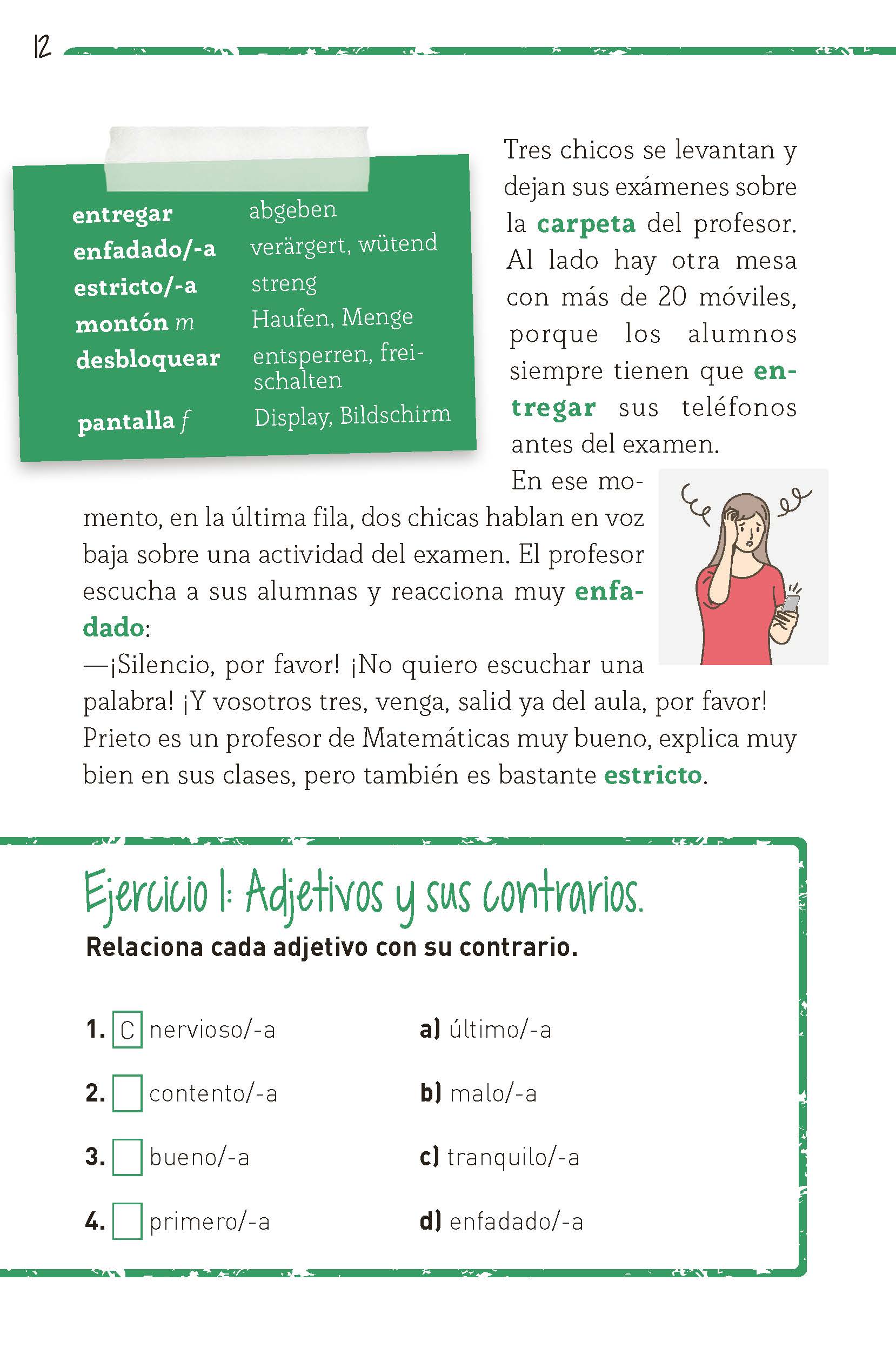 - Infokästen zu Sprache und Grammatik: Zusätzliche Infos, Tipps und Wissenswertes zu Sprache, Grammatik und Landeskunde ergänzen den Schüler-Lernkrimi "Noche sin salida".