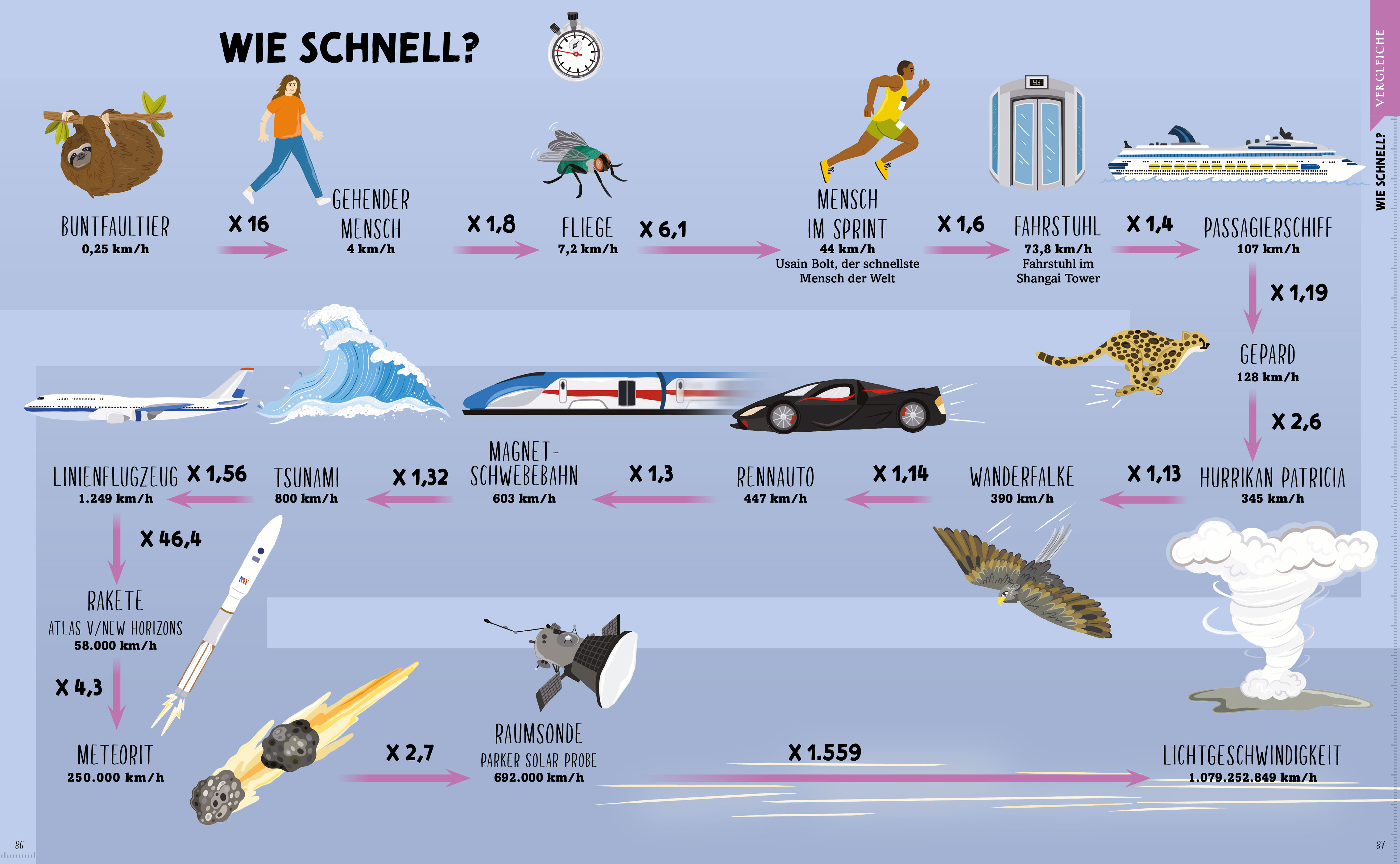 Von der Geschwindigkeit bis zur Tiefe, von der Größe bis zur Höhe, von der Länge bis zum Gewicht: In diesem Kindersachbuch sorgen verblüffenden Fakten rund um die Vermessung der Welt für nachvollziehbare Aha-Effekte.