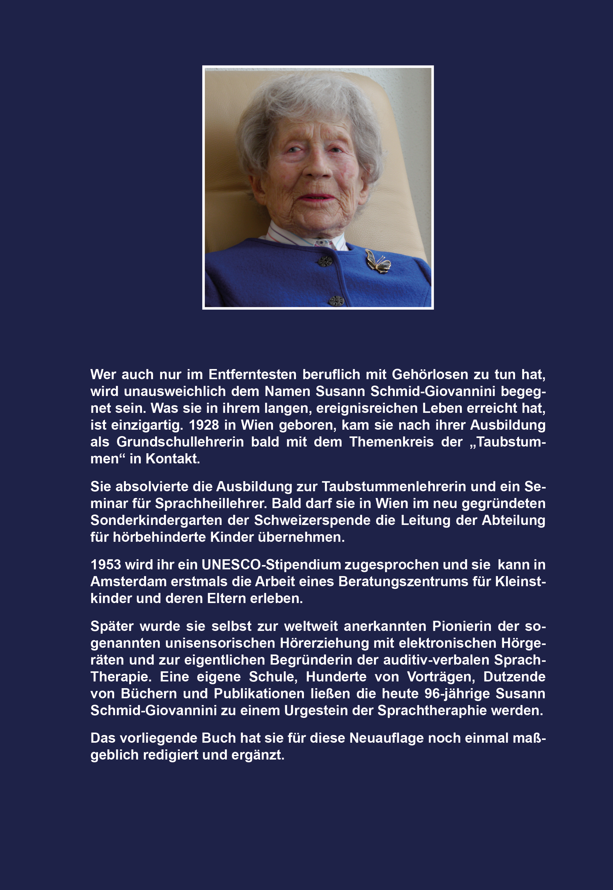 Wer auch nur im Entferntesten beruflich mit Gehörlosen zu tun hat, wird unausweichlich dem Namen Susann Schmid-Giovannini begegnet sein. Was sie in ihrem langen, ereignisreichen Leben erreicht hat, ist einzigartig. 1928 in Wien geboren, kam sie nach ihrer Ausbildung als Grundschullehrerin bald mit dem Themenkreis der „Taubstummen“ in Kontakt.