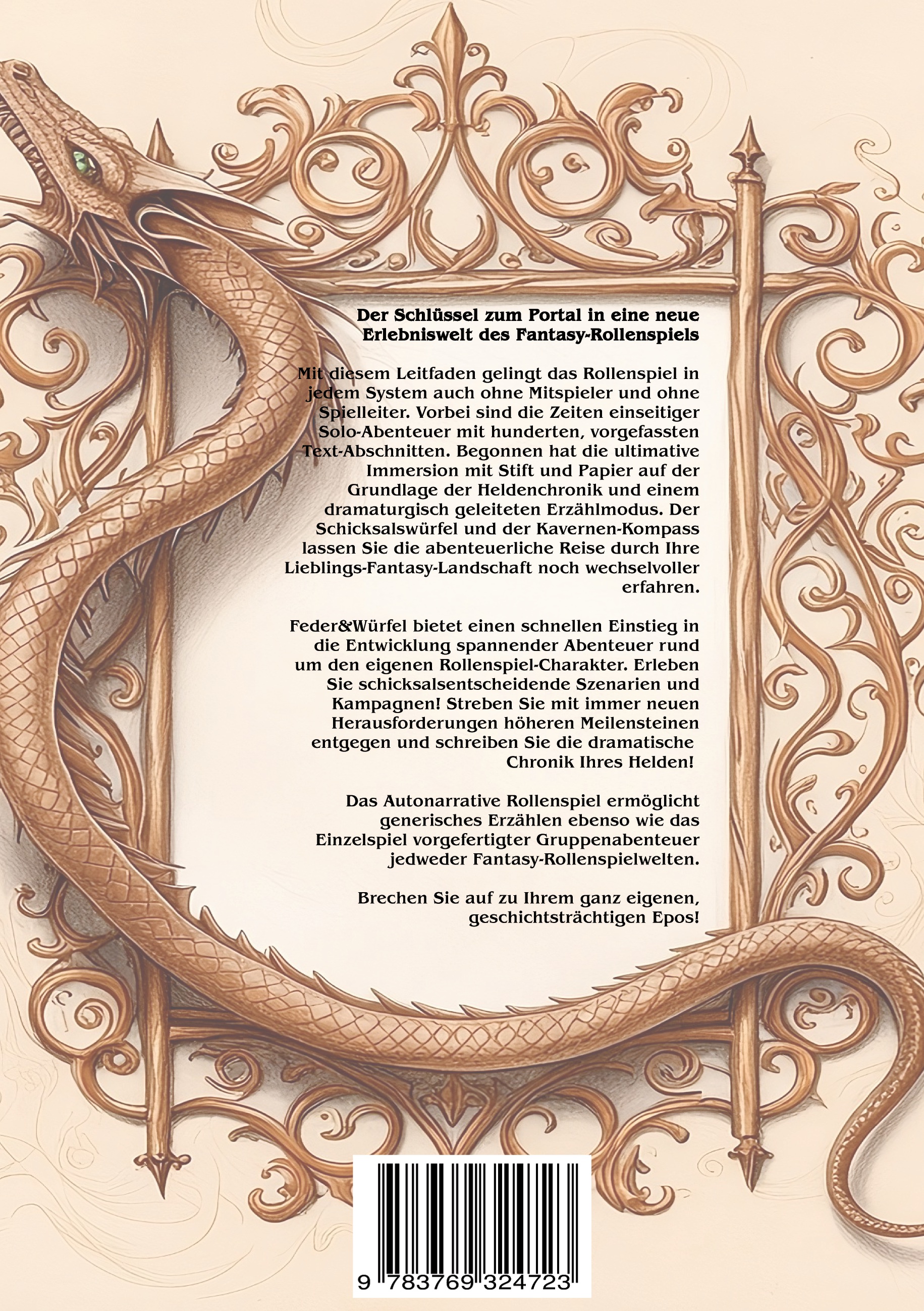 Feder & Würfel bietet einen schnellen Einstieg in die Entwicklung spannender Abenteuer rund um den eigenen Rollenspiel-Charakter. Erleben Sie schicksalsentscheidende Szenarien und Kampagnen! Streben Sie mit immer neuen Herausforderungen höheren Meilensteinen entgegen und schreiben Sie die dramatische Chronik Ihres Helden!