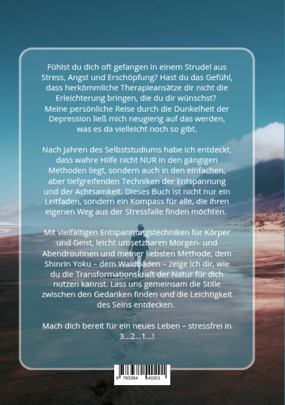 Fühlst du dich gefangen in einem Strudel aus Stress, Angst und Erschöpfung? Hast du das Gefühl, dass du ständig unter Strom stehst und keine Ruhe findest? Dann soll dir dieses Buch nicht nur ein Leitfaden, sondern auch ein Kompass für deinen eigenen Weg aus der Stressfalle sein.Mit vielfältigen Entspannungstechniken für Körper und Geist, leicht umsetzbaren Morgen- und Abendroutinen und meiner liebsten Methode - dem Shinrin Yoku - zeige ich dir, wie du die transformative Kraft der Natur für dich nutzen kannst.