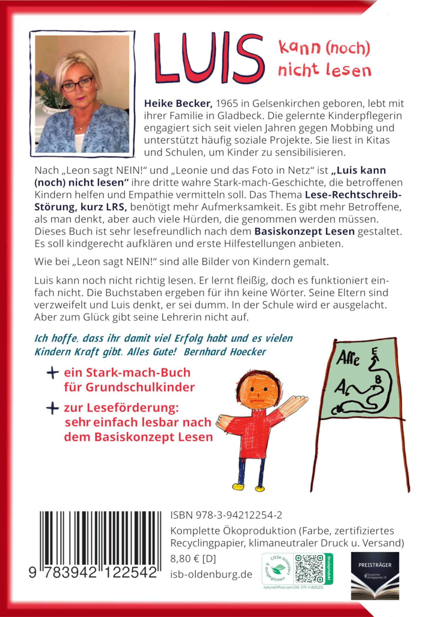 "Frau Becker hat das Thema Lese-Rechtschreib-Störung sehr gut für Grundschulkinder nachvollziehbar in ihre Geschichte um Luis eingewoben. Wir wissen: Kinder können sowohl sehr empathisch als auch verletzend sein (Mobbing). Mit der Einbettung eines Positivbeispiels (Sportlehrer Klein) wird sichtbar, dass eine LRS-Diagnose eben k e i n Scheitern bedeuten muss!" (KIBUM Oldenburg, Christian Kühn, Oktober 2025)