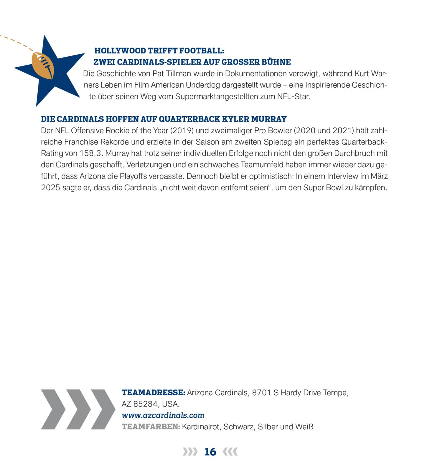 - Alle 32 NFL-Teams übersichtlich alphabetisch geordnet