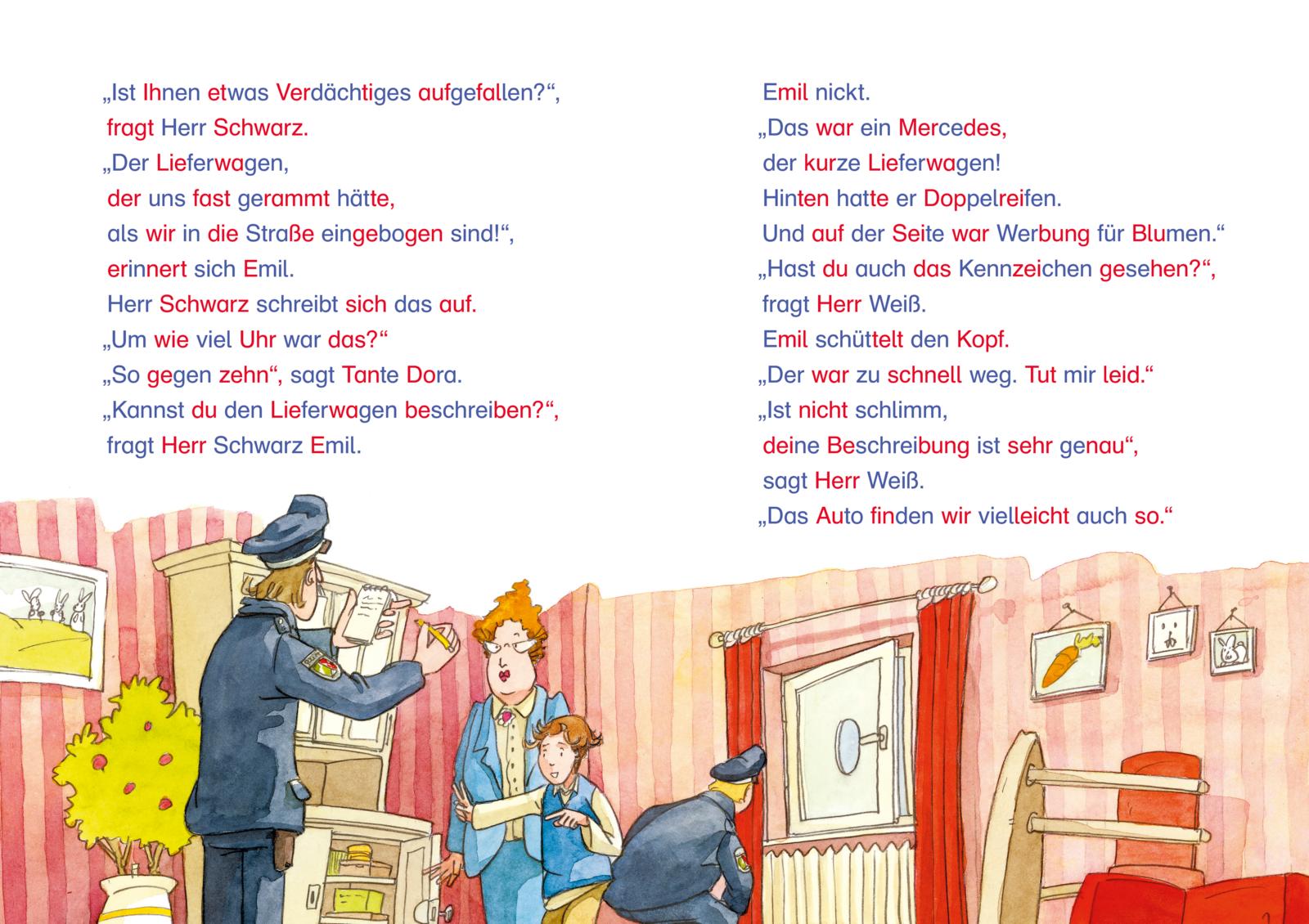 Sechs aufregende Silben-Geschichten erzählen von Abenteuern, in denen es um Einbrüche, Diebstahl, Polizeieinsätze, aber auch um ein verschwundenes Ferkel und geheimnisvolle Lichtblitze geht. Alle Wörter sind in farbigen Silben markiert. Diese kurzen Buchstabengruppen können Erstleser und Erstleserinnen schneller erfassen als das ganze Wort.