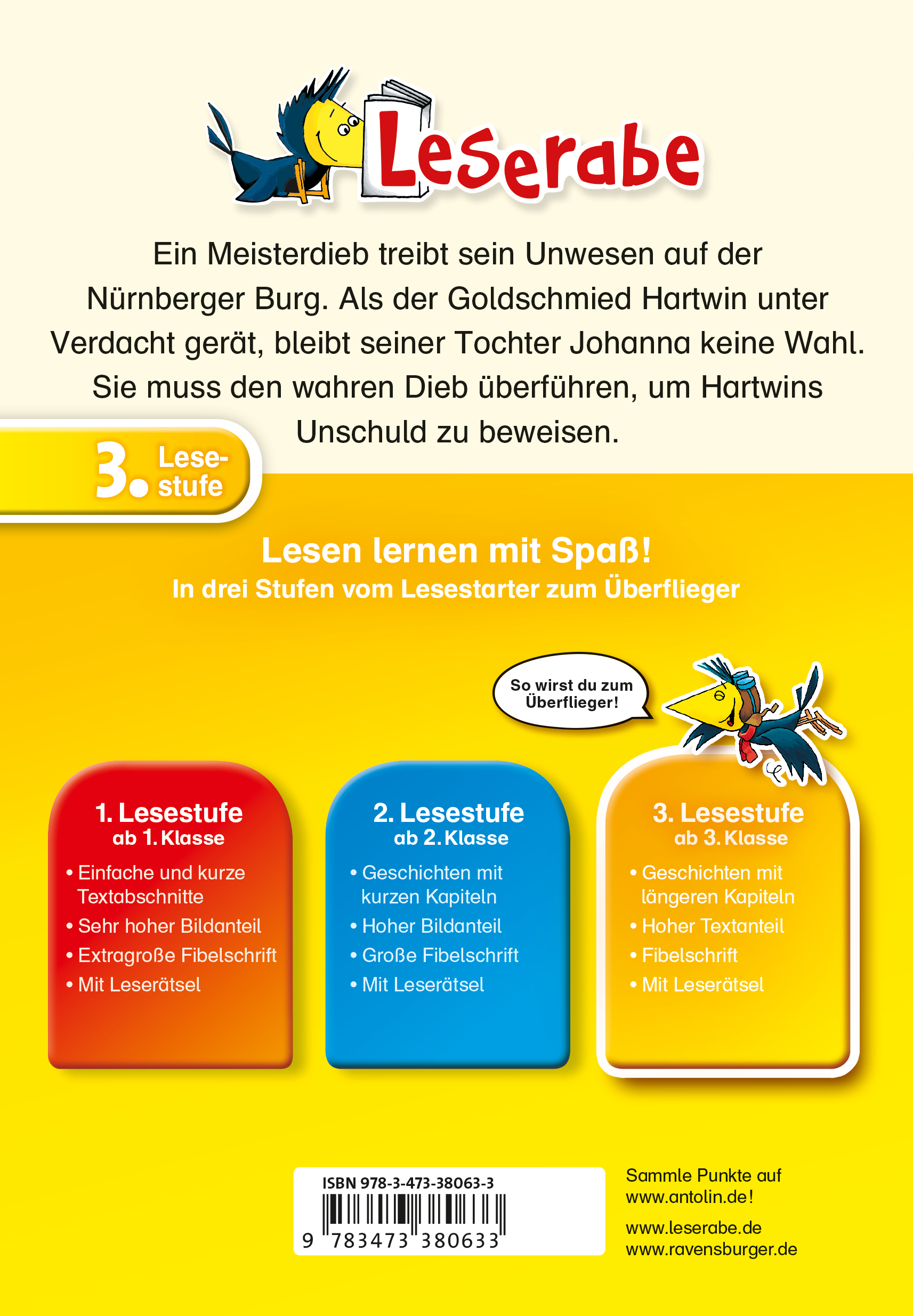 | Schlagworte | 3. Klasse • ab 8 Jahren • Antolin • Antolin (3. Klasse) • Beschäftigung • Broschur • Buch • Bücher • Dieb • Erstlesebuch • Erstlesebücher • Erstleser • Falle • für Jungen • Für Kinder ab 8 Jahre • für Mädchen • Geschenk • Geschenkidee • Geschenk Kinder • Geschichte • Kinderbuch • Kinderbücher • Krimi • Lesen • Lesen lernen • Leserabe • Mädchen • Materialien für Unterrichtsges • Mittelalter • Mittelalter; Kinder-/Jugendlit. • Nürnberg • Ravensburger • Ravensburger erstes lernen • Schulausgabe • Spannung • Überfall • Vater • Zuhause lernen • Zuhause unterrichten |