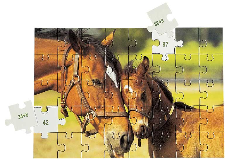 Die neuen SCHUBI MATHpuzzles ergänzen die beliebte Reihe und geben besonderen Anreiz zum Rechnen – denn zur Belohnung gibt es schöne und lustige Lösungsbilder! In jeder Schachtel sind 3 Spiele mit 24 bzw. 40 Aufgaben in steigendem Schwierigkeitsgrad. Die Puzzleteile werden mit der Aufgabenseite nach oben auf dem Tisch ausgelegt. Aufgabe um Aufgabe wird gelöst und das Puzzleteil umgedreht auf die richtige Ergebniszahl auf der Legetafel abgelegt. So entsteht nach und nach ein buntes Bild als Lösungskontrolle.