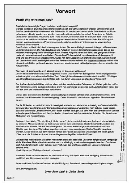Das Arbeitsheft ist eine sinnvolle Ergänzung zum Lesetraining. Darin finden sich weitere sehr variable vertiefende Übungen zu den einzelnen Lesetexten. Neben Aufgaben zum Textverständnis und zur Konzentration werden auch die Kenntnisse in der Rechtschreibung und Grammatik schwerpunktmäßig verbessert. In Kombination bieten das Lesetraining sowie das Arbeitsheft eine ungemein effektive Trainingsmethode zur Verbesserung und Erweiterung der Lesekompetenz Ihrer Schüler!