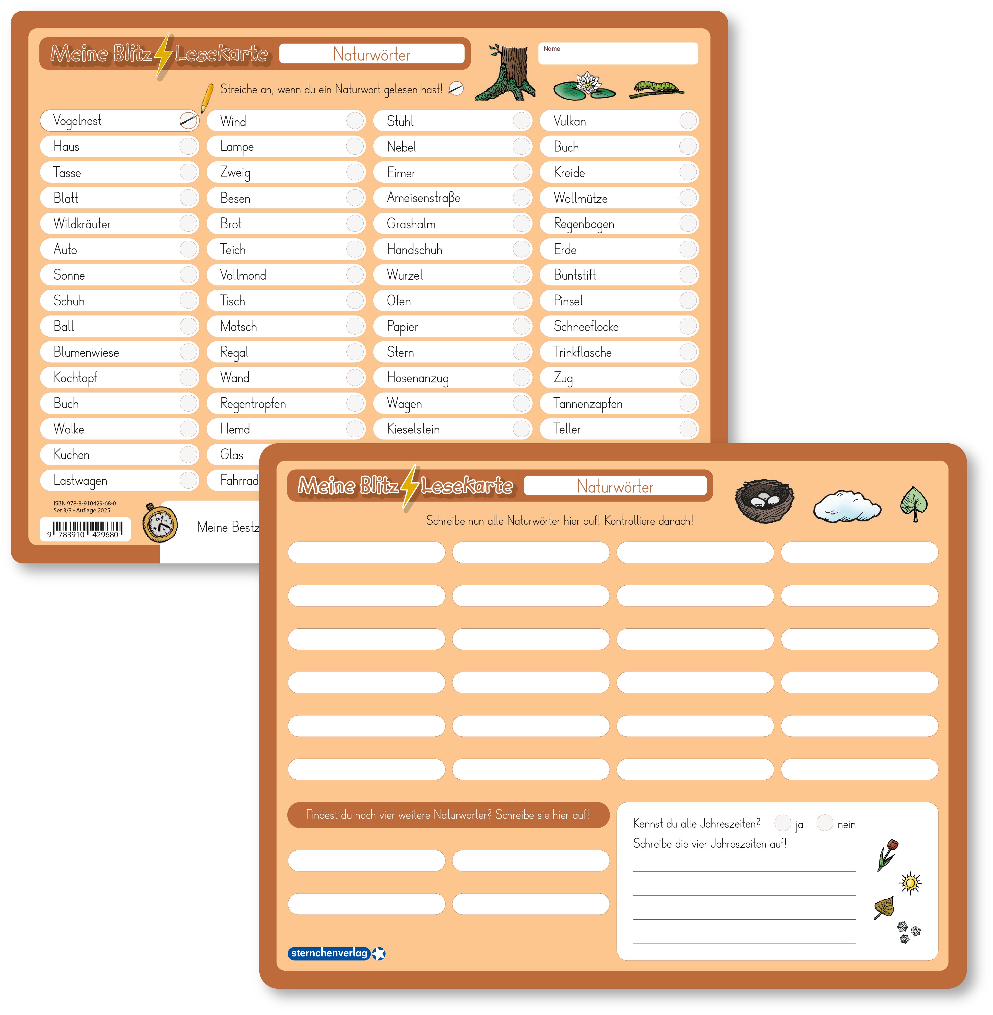 Die Kinder erlernen bei diesen Blitzlesekarten das zügige und genaue Lesen. Jeweils 60 Wörter mit 24 Themenwörtern beinhaltet die Lernvorlage. Durch konzentriertes Lesen auf der ersten Seite soll das Kind die richtigen Wörter anstreichen. Am Ende kann das Kind immer wieder seine Bestzeit und die Anzahl der gefundenen Suchwörter in die vorgesehenen Felder eintragen. Auf der Rückseite schreiben sie die gefundenen Wörter mit dem beiliegenden Stift auf. Die Blitzlesekarten schulen das Leseverstehen sowie das flüssige und aufmerksame Lesen. Praktisch und sauber, trocken abwischbar, ohne zu schmieren und ohne Farbrückstände. 3 stabile Tafeln im großen Format 32,5 x 25 cm (Vorder- und Rückseite)