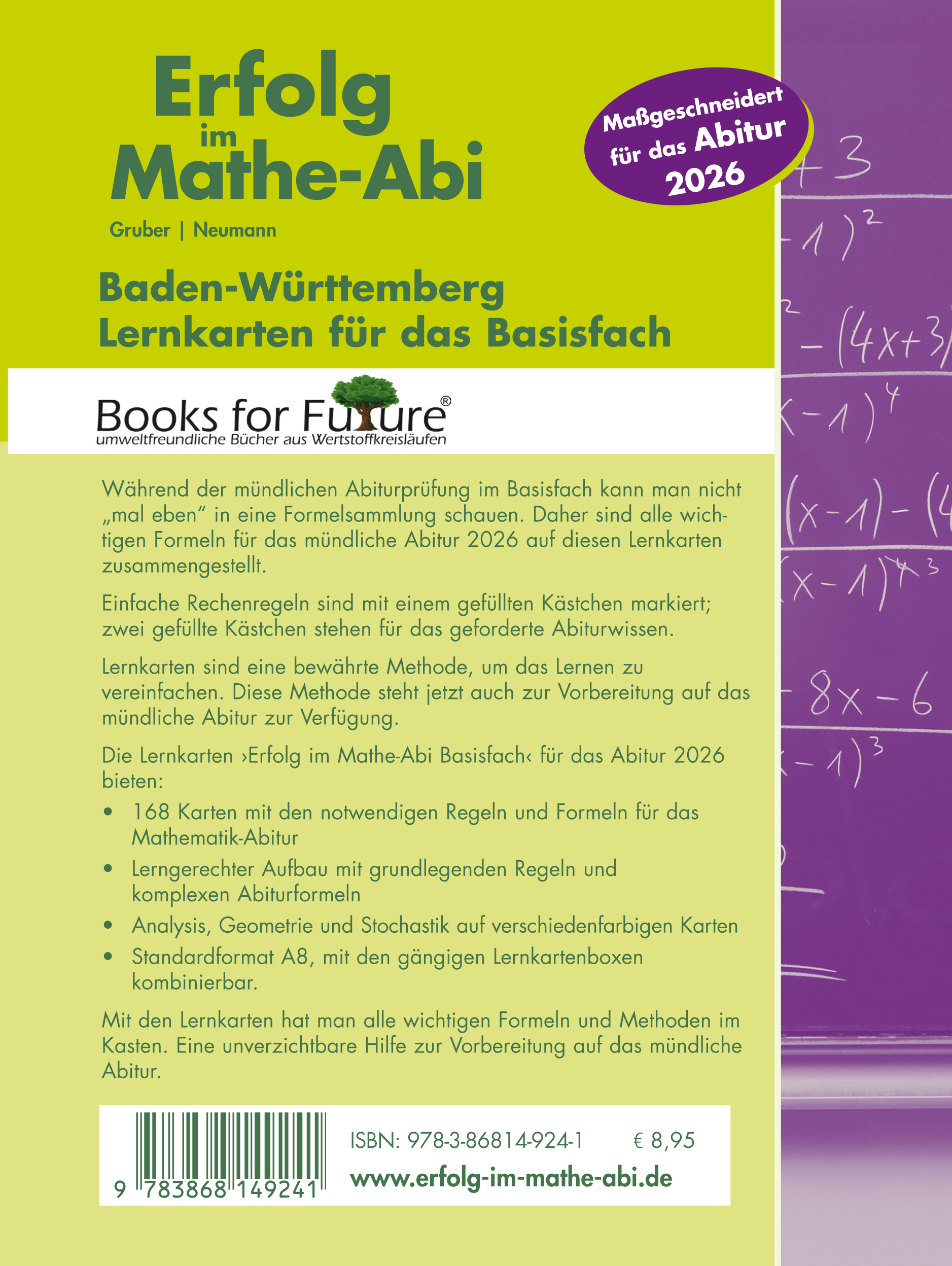 Erfolg im Mathe-Abi 2026, 168 Lernkarten Basisfach Allgemeinbildendes Gymnasium Baden-Württemberg