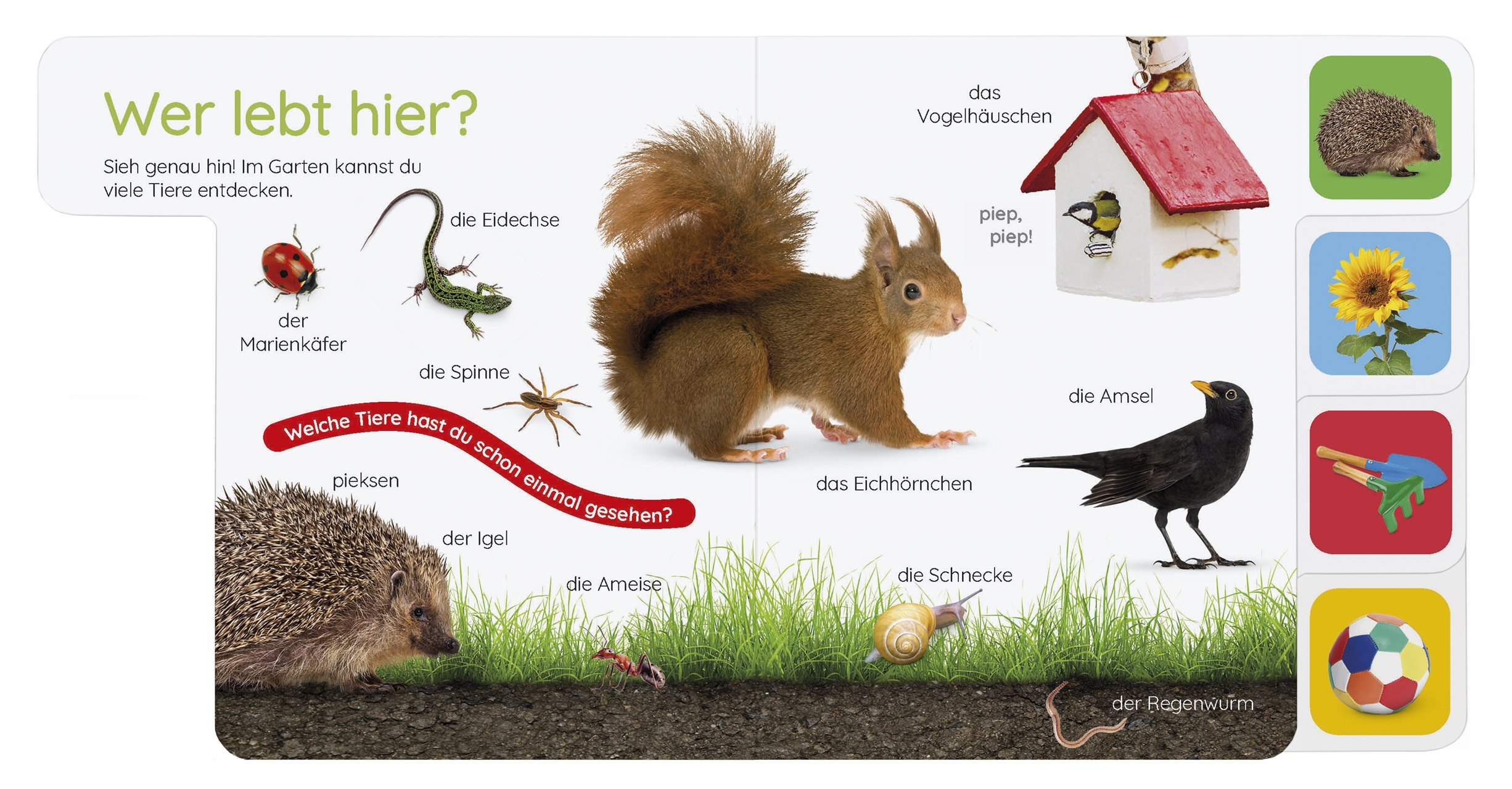 | Schlagworte | Babybuch • Babybuch griffregister • Bilderbuch ab 1 • Bilderbuch Garten • Bilderlexikon • Bilderwörterbuch • Bildwörterbuch • Bildwörterbuch Garten • buch ab 1 jahr • dk erstes lernen • erstes Lernen • Erstes Lernen Buch • Erstes Lernen Wörter • erste Wörter • erste wörter buch • Fotos • Geschenk Kleinkind • in unserem Garten • kinderbuch 1 jahr • Kinderbuch ab 1 • Kinderbuch Garten • Kinderbuch Pflanzen • Kinderbuch Tiere • kleinkind buch • Kleinkind Entwicklung fördern • Kleinkind spielerisch fördern • meine ersten wörter buch • Pappbilderbuch • Pappbilderbuch Garten • Pappbilderbuch Griffregister • Pappe Buch • Spielerisch lernen • Sprachentwicklung • Sprachförderung • Sprechen lernen • Tiere im Garten Buch • Wortschatz • Wortschatz erweitern • Wortschatz Kinder |