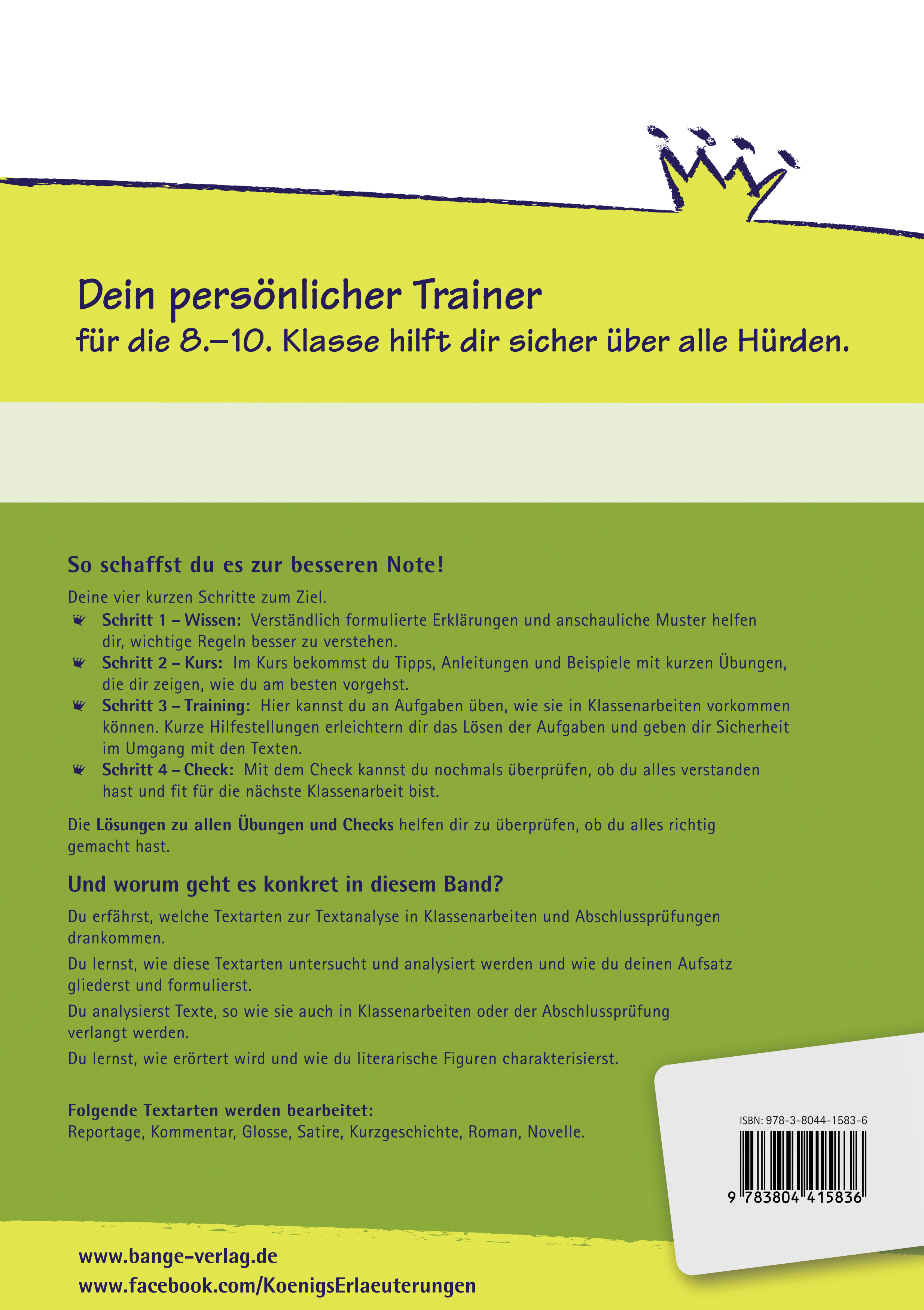| Schlagworte | 10. Klasse • 8.-10. Klasse Deutsch • 8. Klasse • 9. Klasse • Arbeitsheft • Aufsatz • Aufsatztrainer • Deutsch • Gesmtschule • Glosse • Gymnasium • Kommentar • Königs Fitness • Lernhilfe • Novelle • Realschule • Reportage • Roman • Satire • Übungsheft Deutsch |