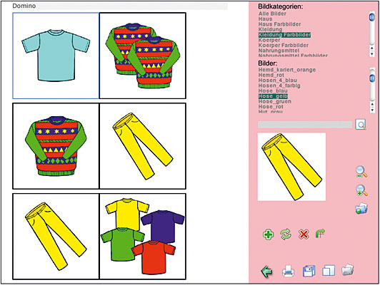 • Leervorlagen für Lottos, Dominos, Memos und Quartette in verschiedenen Größen, zusätzlich eine Vorlage für Bildkarten mit einem Textstreifen