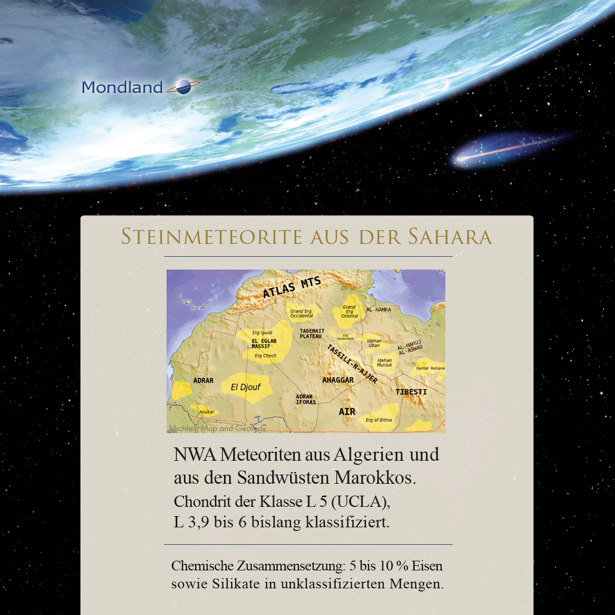 Im Lieferumfang zusätzlich enthalten ist auch noch eine echte Sternschnuppe. Ein Meteorten-Fragment mit Zertifikat, welches die extraterrestrische Herkunft bestätigt. Das Meteoritengestein ist ein Chondrit (NWA aus der Nord-Sahara: Algerien, Marokko).