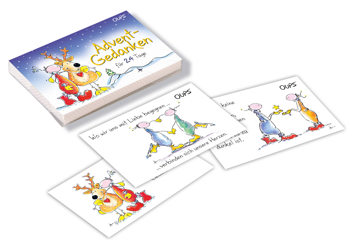 | Schlagworte | Advent • Adventkalender • Adventskalender z. Lesen u. Basteln/Umklappen etc. • Christmas • Geschenkartikel (Nonbooks) • Kärtchen • Kärtchenbox • OUPS • Sprüche • Spruchkärtchen (Nonbooks) • Weihnachten • Winter |