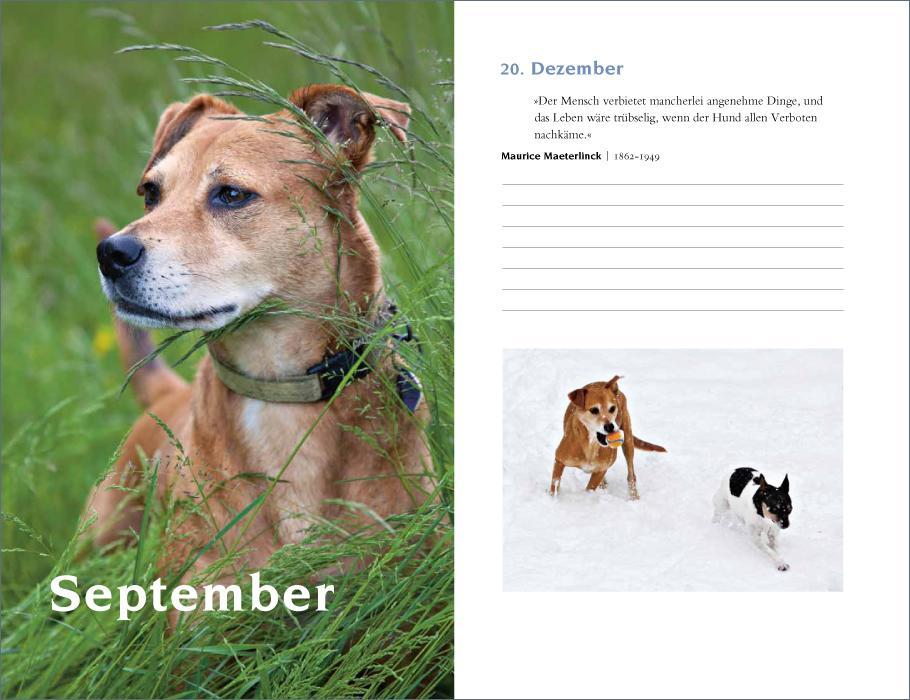 Ein immerwährender Kalender, Flexcover mit abgerundeten Ecken, Lesebändchen, 13 x 19,5 cm | Mit zahlreichen farbigen Hunde-Fotos und Zitaten