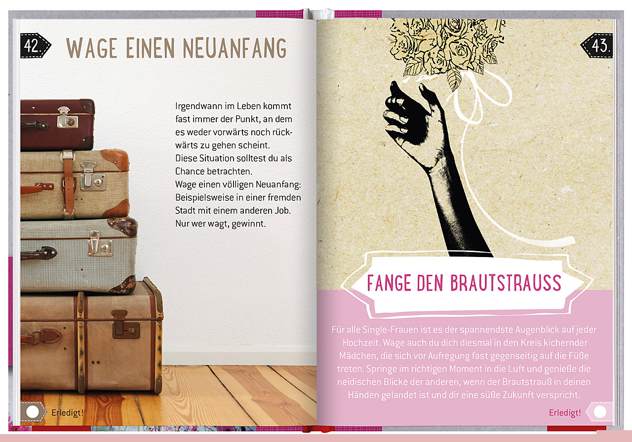 | Schlagworte | 100 Dinge • Abenteuer • Abenteurer • Frau • Frauen • Frauengeschenk • Frau; Geschenkbuch • Geburtstagsgeschenk • Geschenk Abitur • Geschenkbuch • Geschenk Frau • Geschenk Freundin • Geschenk Freundinnen • Geschenk Tochter • Humor • Lebensfreude • Optimismus • Prime • Unterhaltung • Weihnachtsgeschenk |