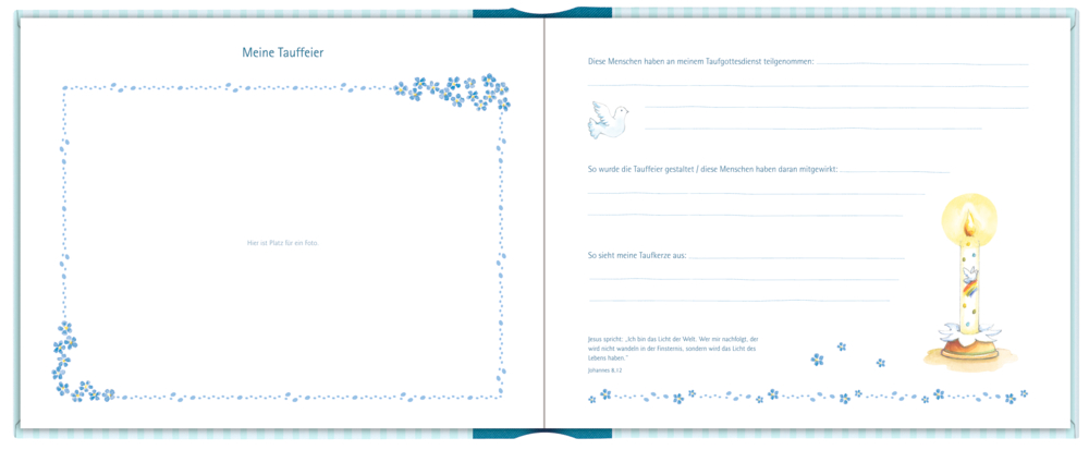 | Schlagworte | Album Coppenrath • Eintragalbum • Erinnerung • Erinnerungsalbum • Erinnerungsalbum (Papeterie) • Familie & Alltag • Familie & Alltag • Meine Taufe • Religion • Taufe • Taufe; Nonbooks • Taufe; Papeterie |